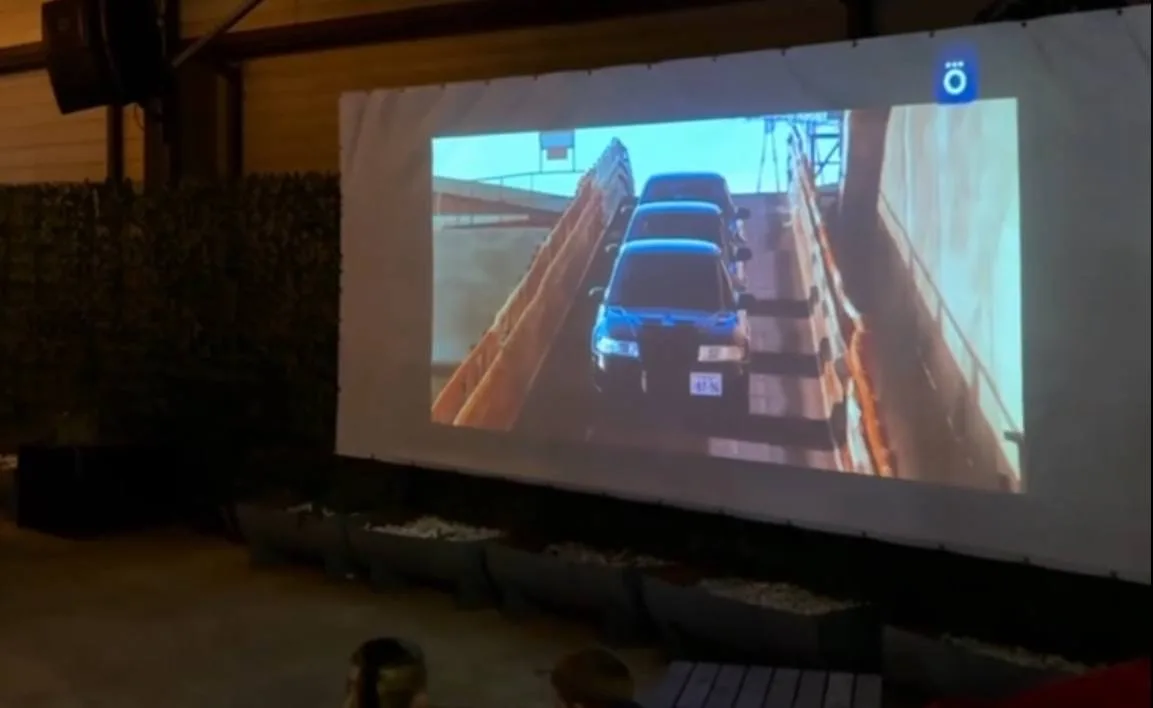 Кинопоказ в открытом кинотеатре напротив автовокзала