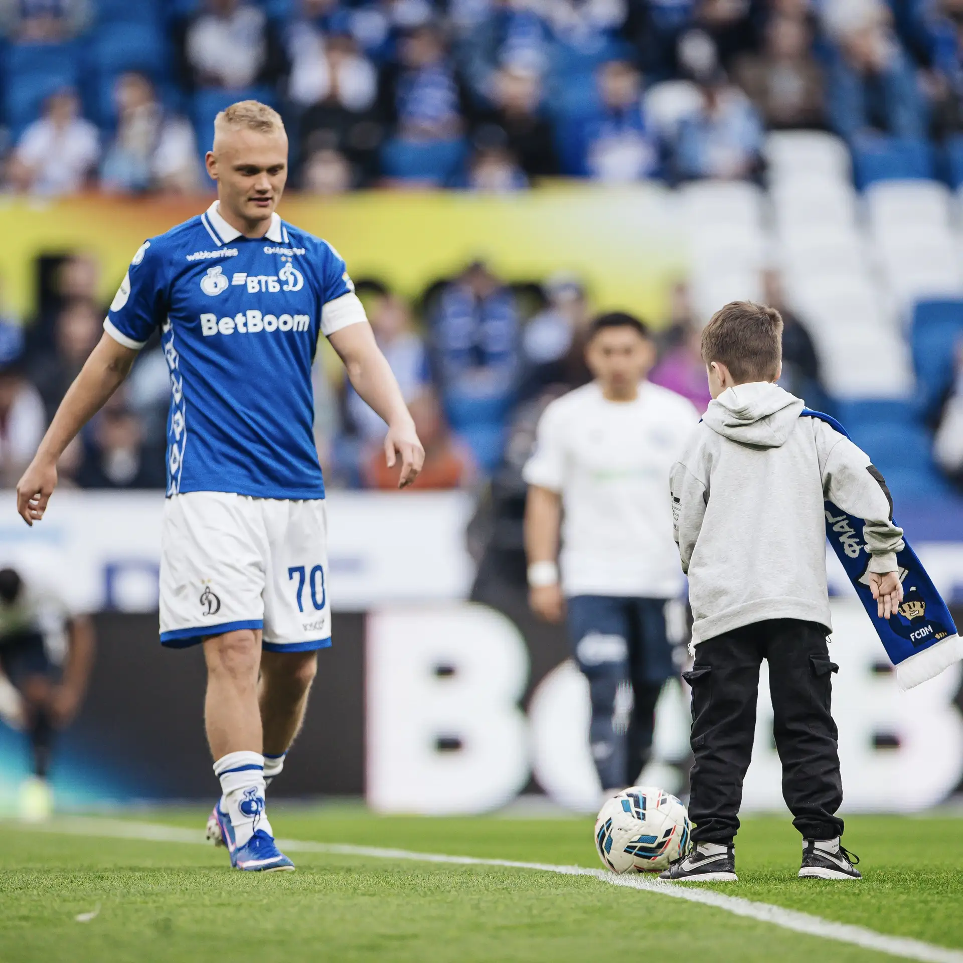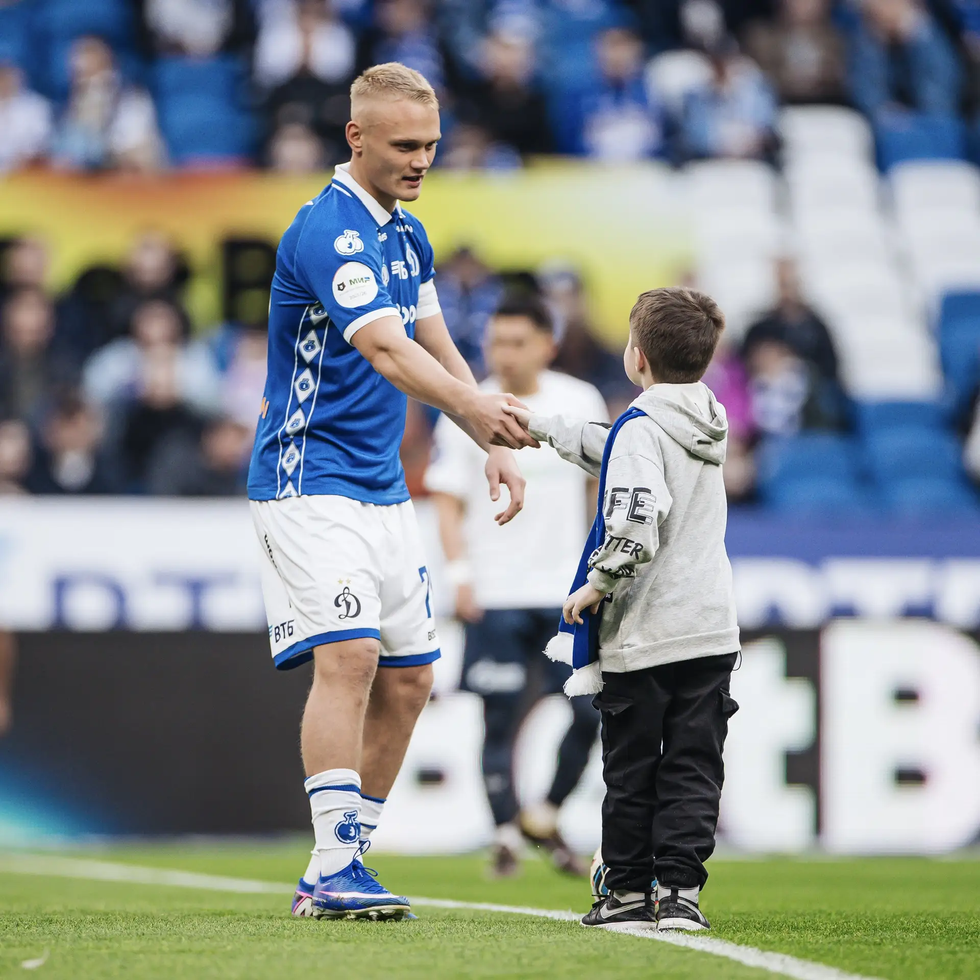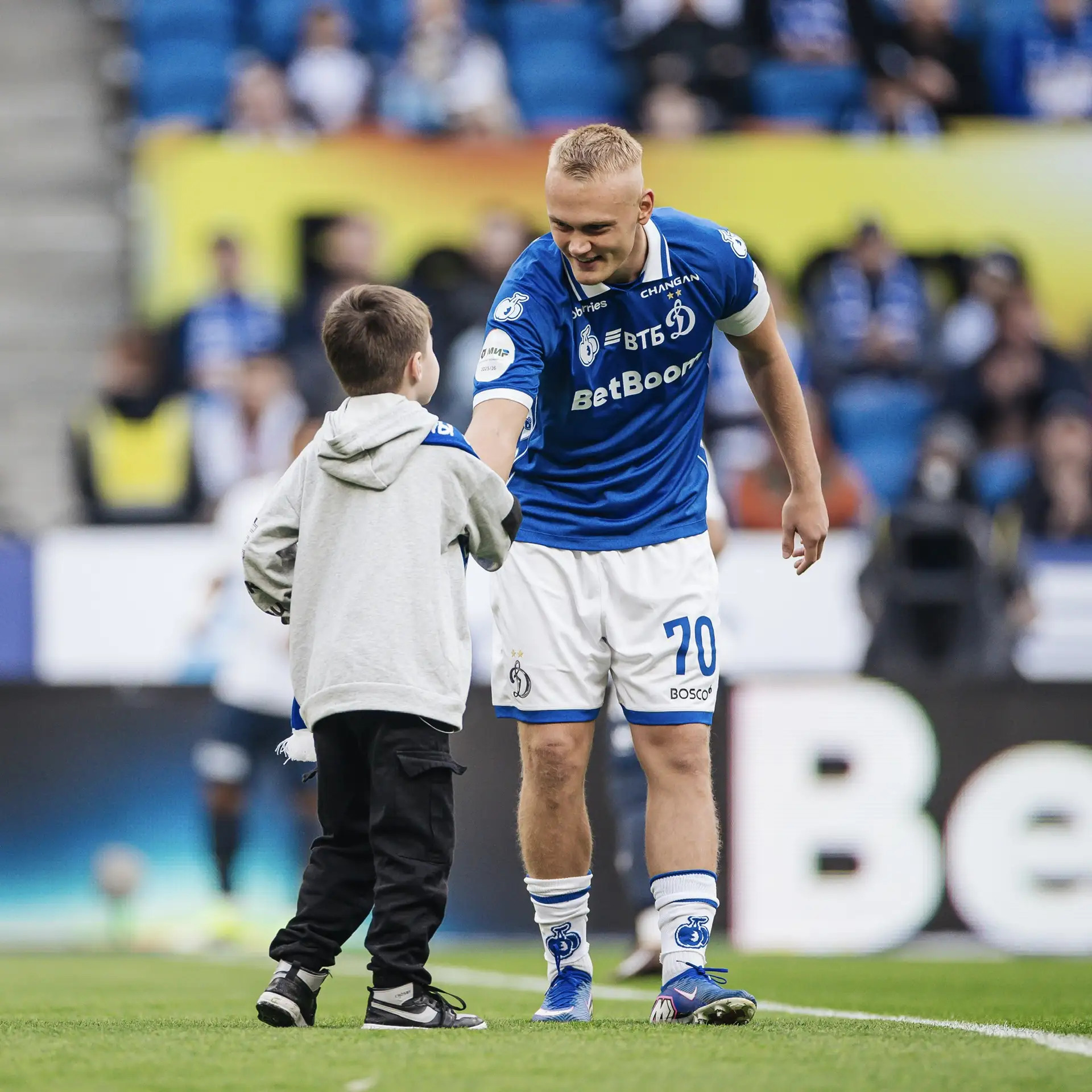 Макар занимается футболом с 5 лет, болеет за «Динамо», а его кумир — Костя Тюкавин. Юный болельщик всегда мечтал выйти на поле с футболистами бело-голубых: сегодня эта мечта воплотилась в реальность!