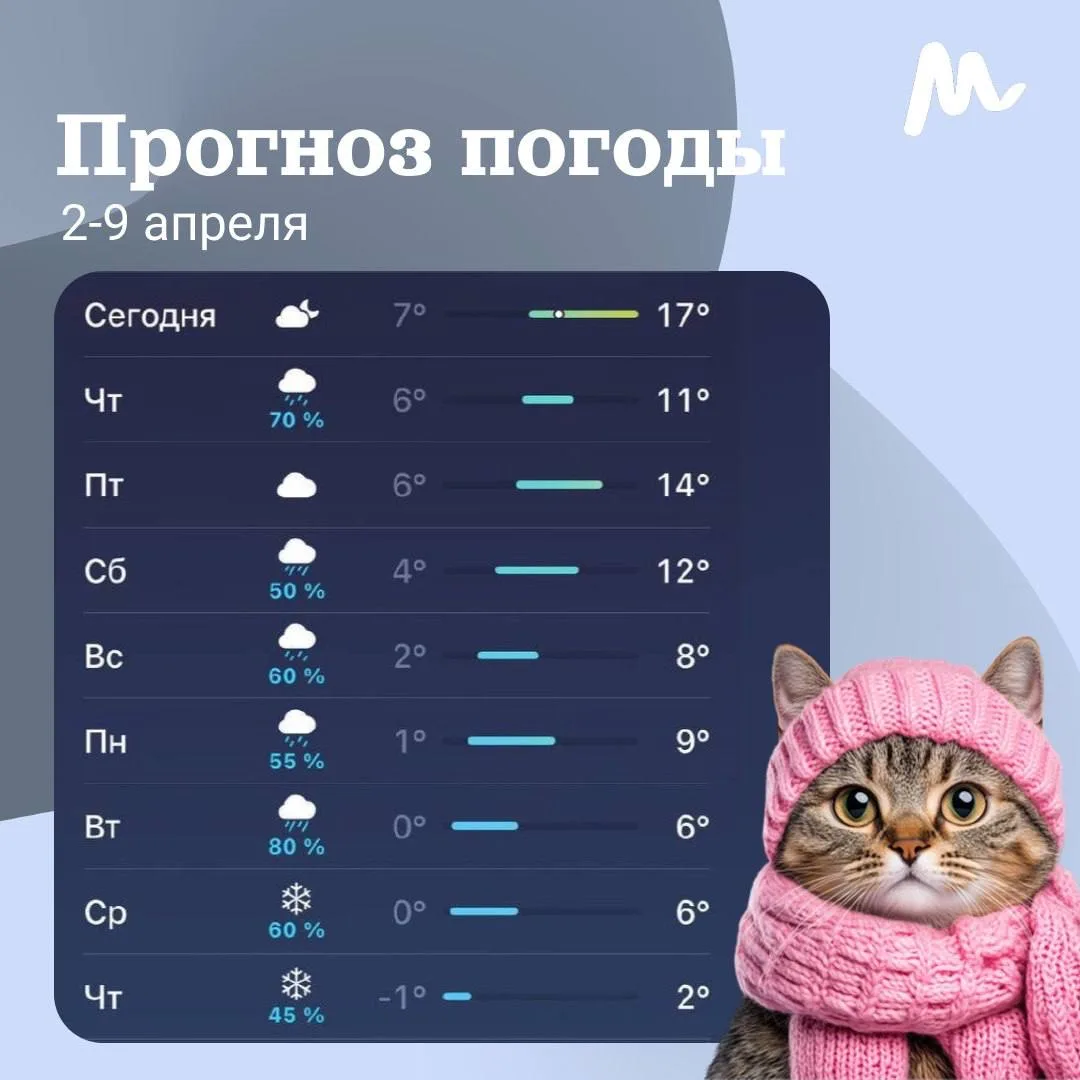 🌡️ Стабильная среднесуточная температура в Москве достигла отметки выше +7°C. При такой погоде зимняя резина не подходит для безопасного вождения.