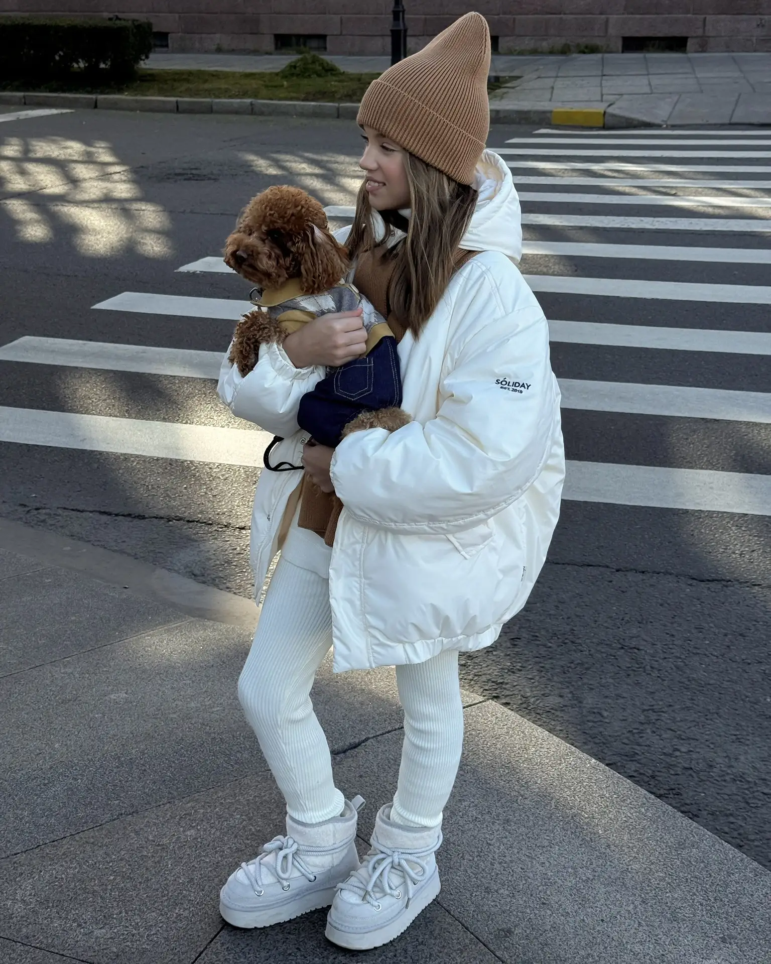 На такие длинные прогулки мы подобрали тёплый комплект: