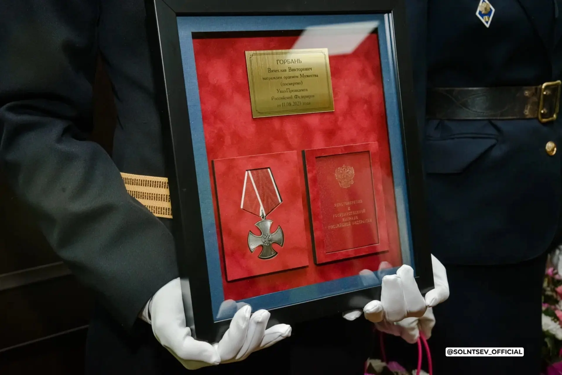 Выполняя свой долг в зоне специальной военной операции, защищая границы страны, майор Горбань попал под атаку дрона и погиб. Сегодня в присутствии коллег героя передал награду его семье. Вячеслав был верным присяге воином, надёжным товарищем, готовым в любую минуту прийти на помощь, честным, бескорыстным человеком в службе и жизни, смелым и решительным.