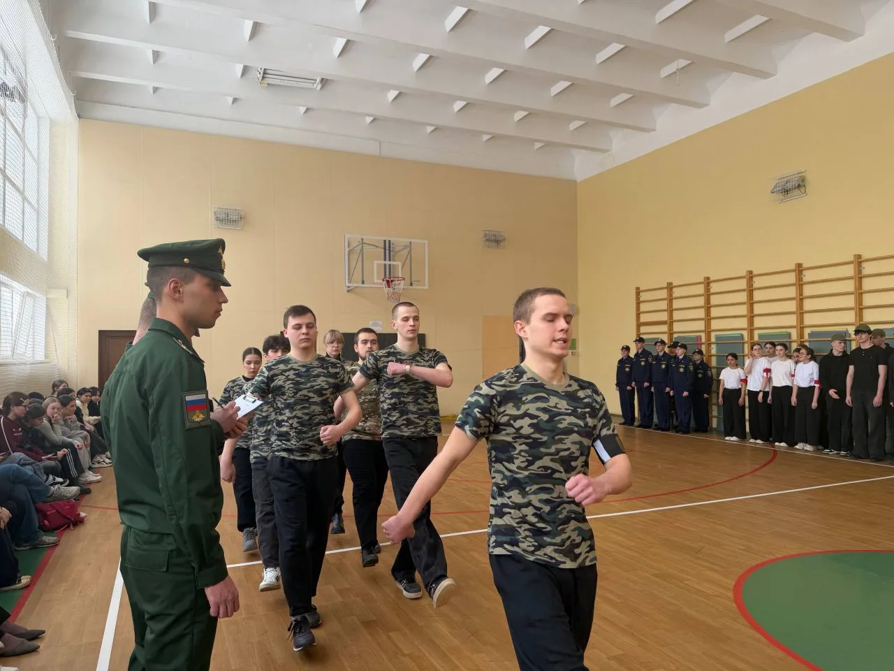 🪖 Ребята показывали навыки военно-строевой и физической подготовки, собирали и разбирали макет автомата Калашникова, выносили товарища с "поля боя" и оказывали ему первую помощь.