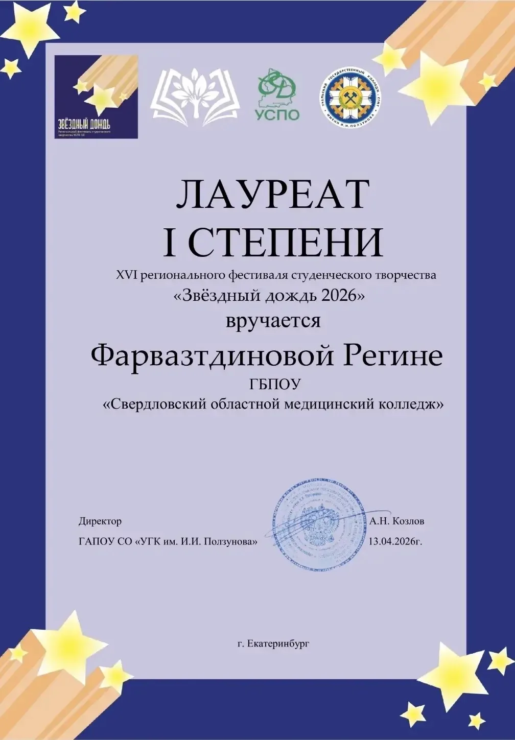 Буквально сегодня они получили заслуженные награды за участие в XXVII Региональном фестивале студенческого творчества «Уральская студенческая весна»: