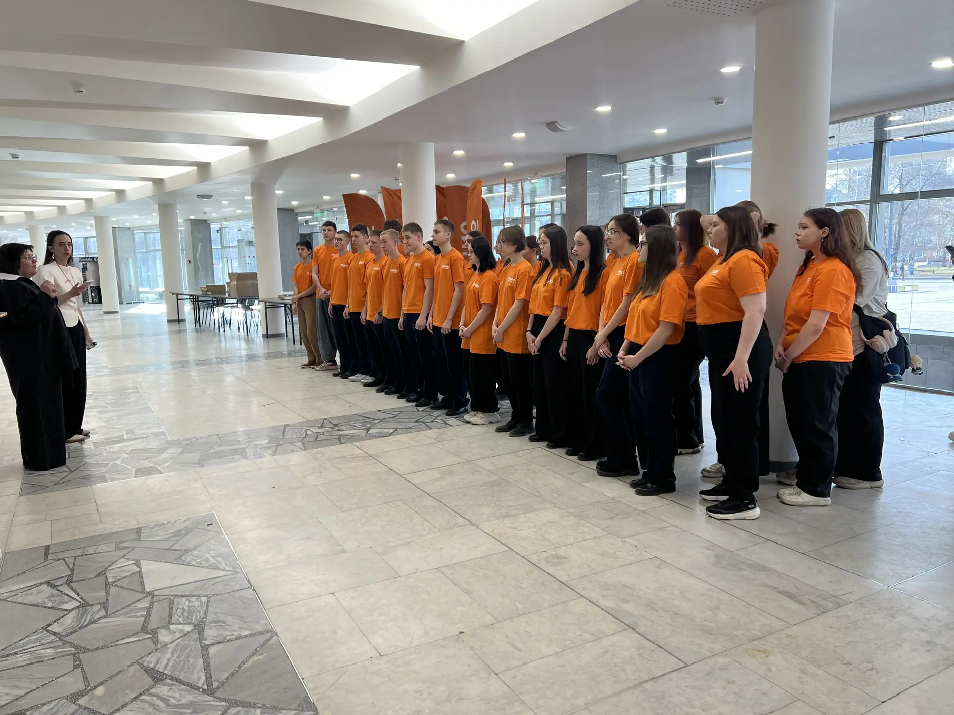 С самого утра, с 7:30, команда наших студентов активно сопровождает организацию всего мероприятия. Ребята помогают с навигацией, координацией участников и создают атмосферу поддержки и командного духа.