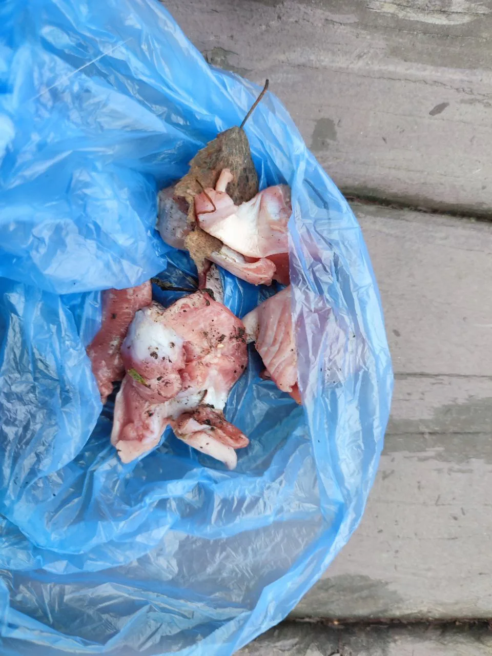 😱 Вдоль сквера напротив дома Пестеля, д. 1 обнаружены разбросанные куски мяса.