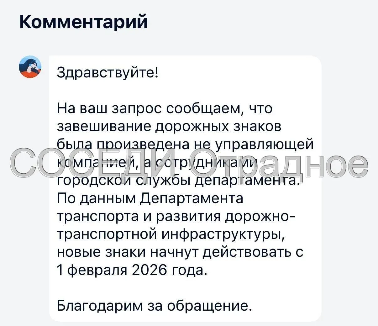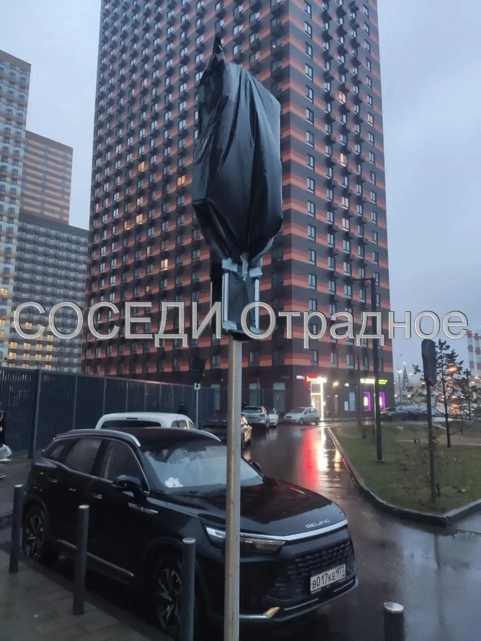 Поступила информация от жителей ЖК «Сигнальный 16», что знаки платной парковки, установленные на проездах в ЖК, закрыли пленкой. УК направила жителям сообщение о переносе срока. Такая же ситуация и в ЖК «Римского-Корсакова 11».
