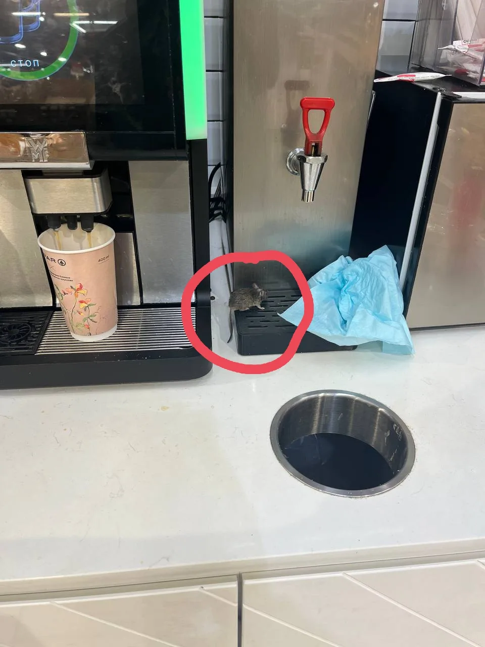 В магазине «Eurospar» на улице Декабристов, 15 рядом с аппаратом кофемашины была замечена мышь.