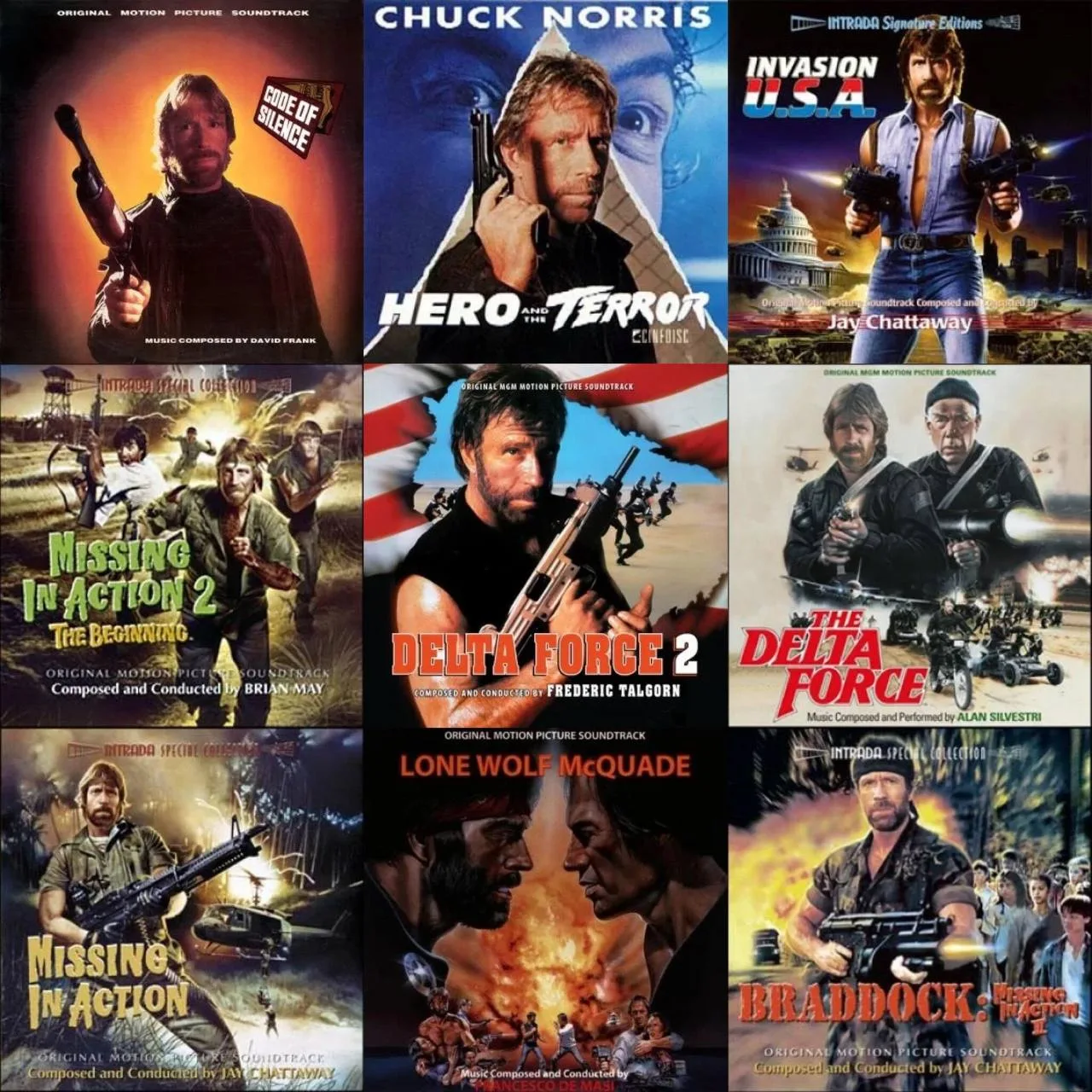 Помимо статуса культового кино-актера и его неотъемлемой роли в становлении всемирной поп-културы, Чак появился буквально на каждой обложке саундтреков к фильмам с его участием, которые согревали наши уши в детстве и отрочестве.