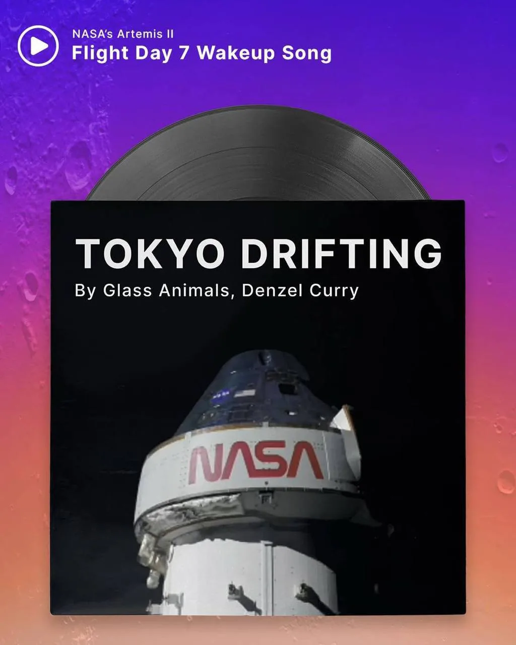 Во время миссии «Артемида II» экипаж включил «Tokyo Drifting» – бодрый трек Дензела и Glass Animals.
