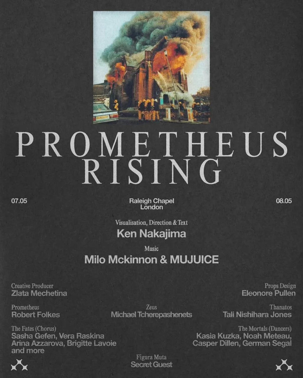 Само действие развернется в заброшенной церкви XIX века, в Лондоне 7-8 мая. По словам СМИ, постановка будет иммерсивной и каждый зритель примет непосредственное участие в процессе.