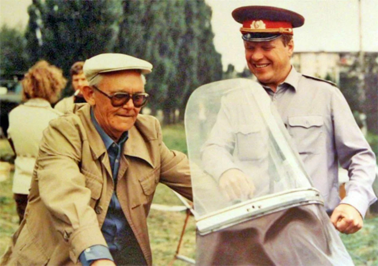 Леонид Гайдай и Михаил Кокшенов, съемки "Опасно для жизни!" 1985 год