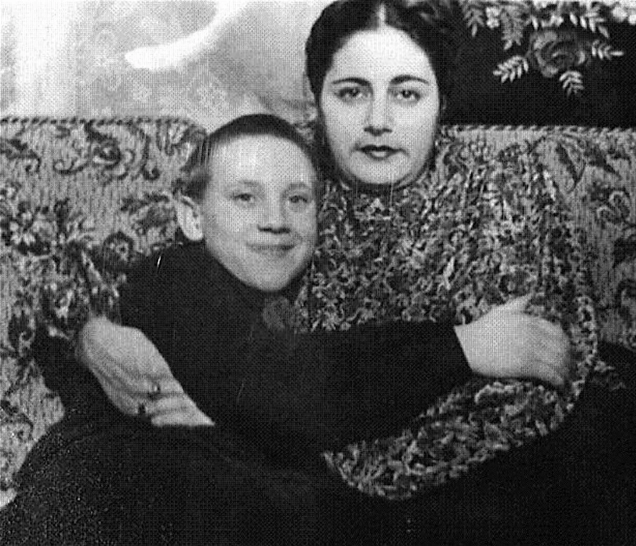 Володя Высоцкий и его приёмная мама Евгения Степановна Лихалатова в квартире на Большом Каретном. Фото конца 1949 года