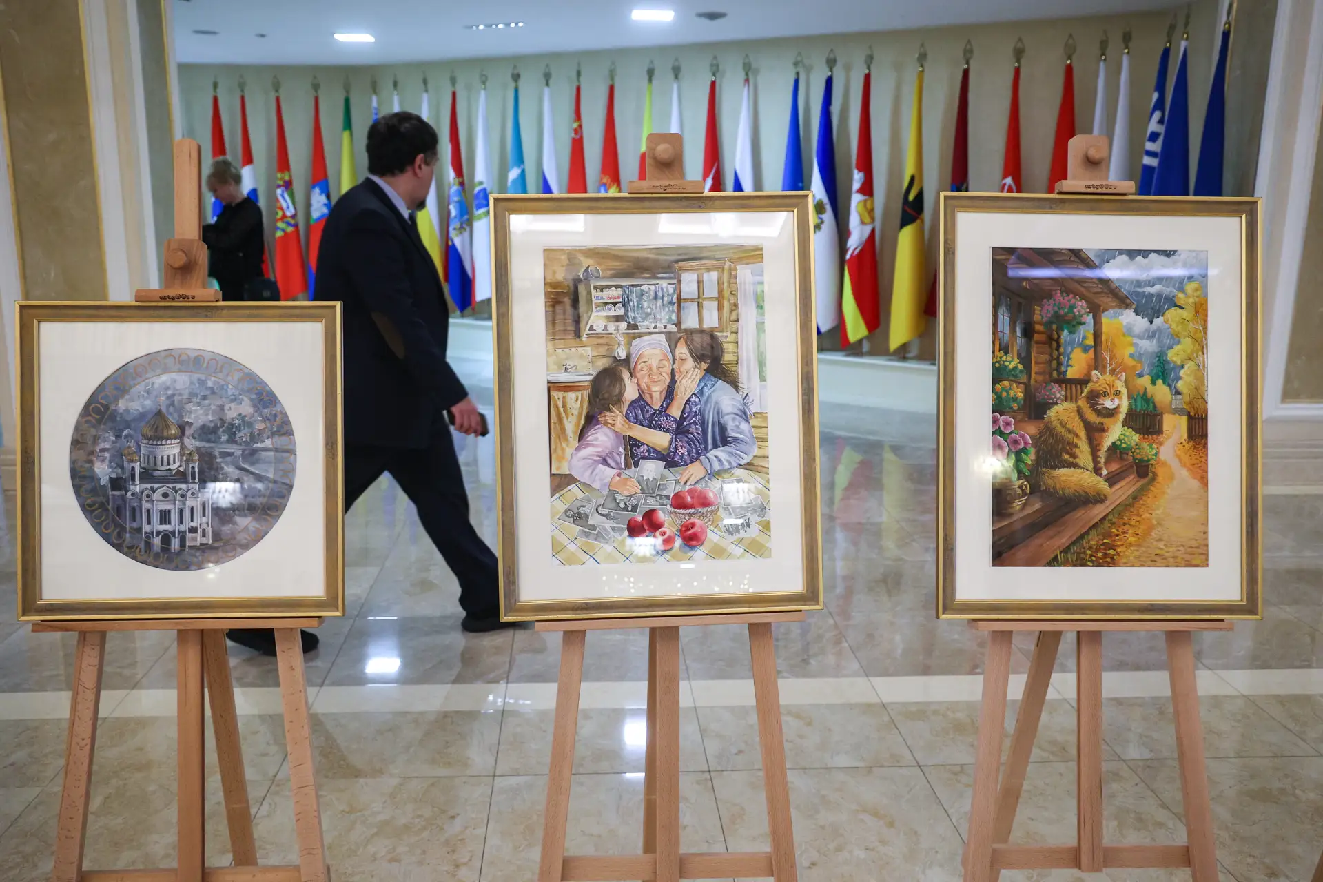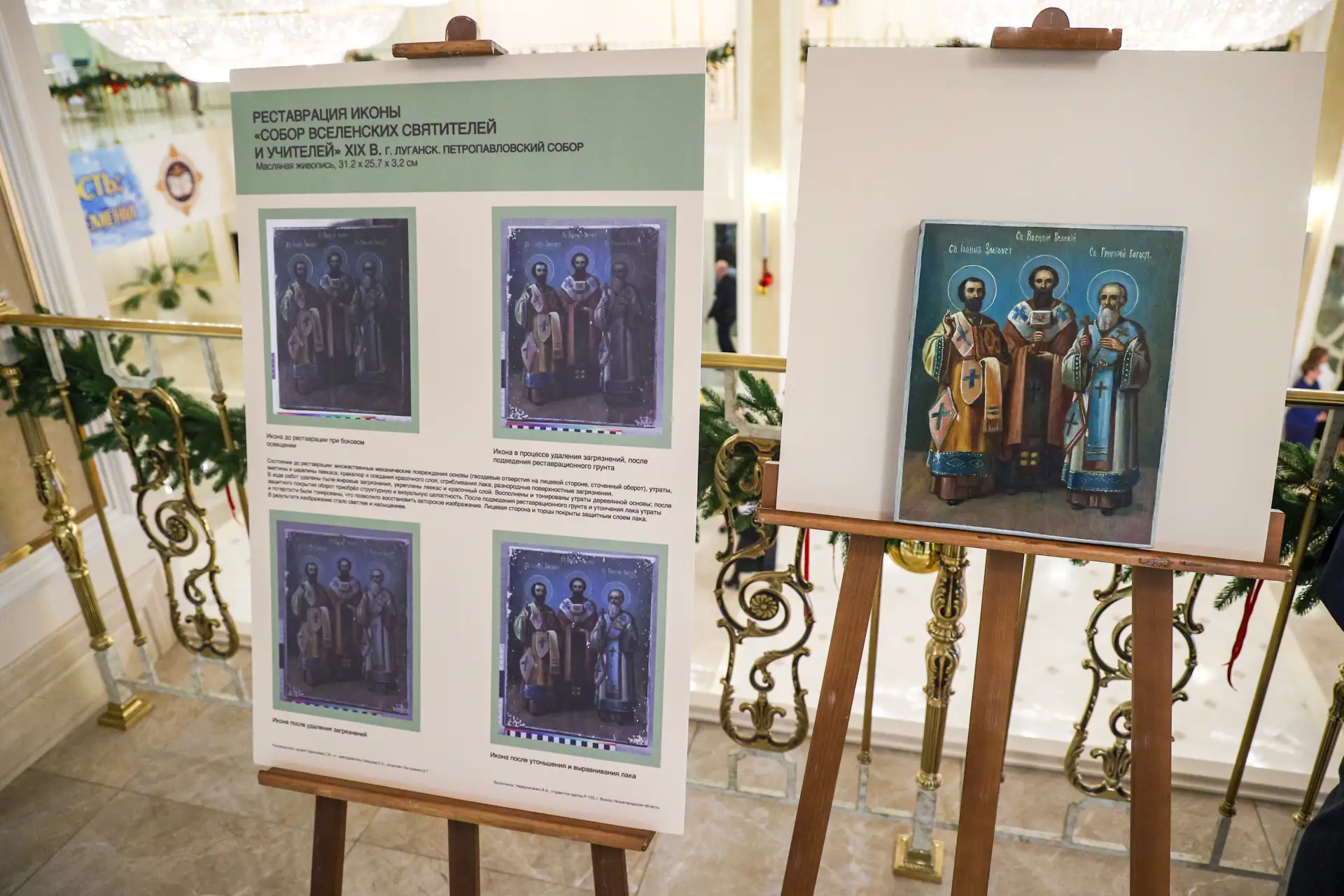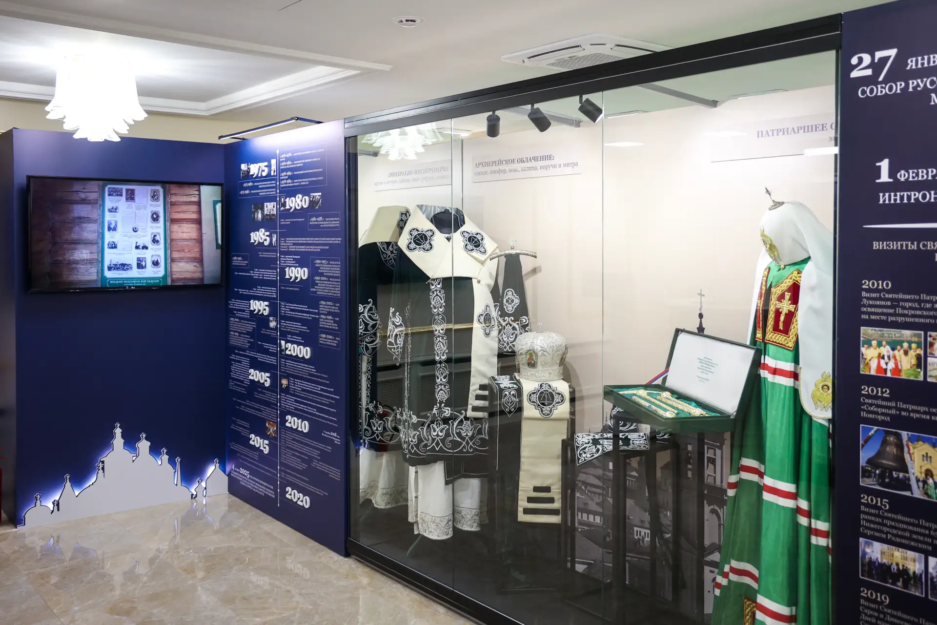 Председатель Совета Федерации Валентина Матвиенко и Святейший Патриарх Московский и всея Руси Кирилл осмотрели выставку детских рисунков «Красота Божьего мира», ознакомились с экспонатами Музея Русского Патриаршества на экспозиции «Люди Церкви: история одного рода» и восстановленными иконами Донбасса из Свято-Петропавловского кафедрального собора.