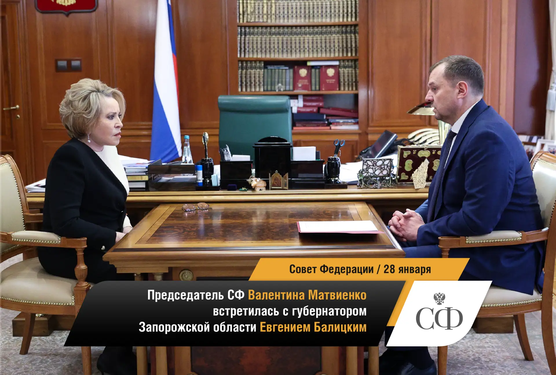 🔹 Председатель Совета Федерации Валентина Матвиенко провела встречу с губернатором Запорожской области Евгением Балицким.