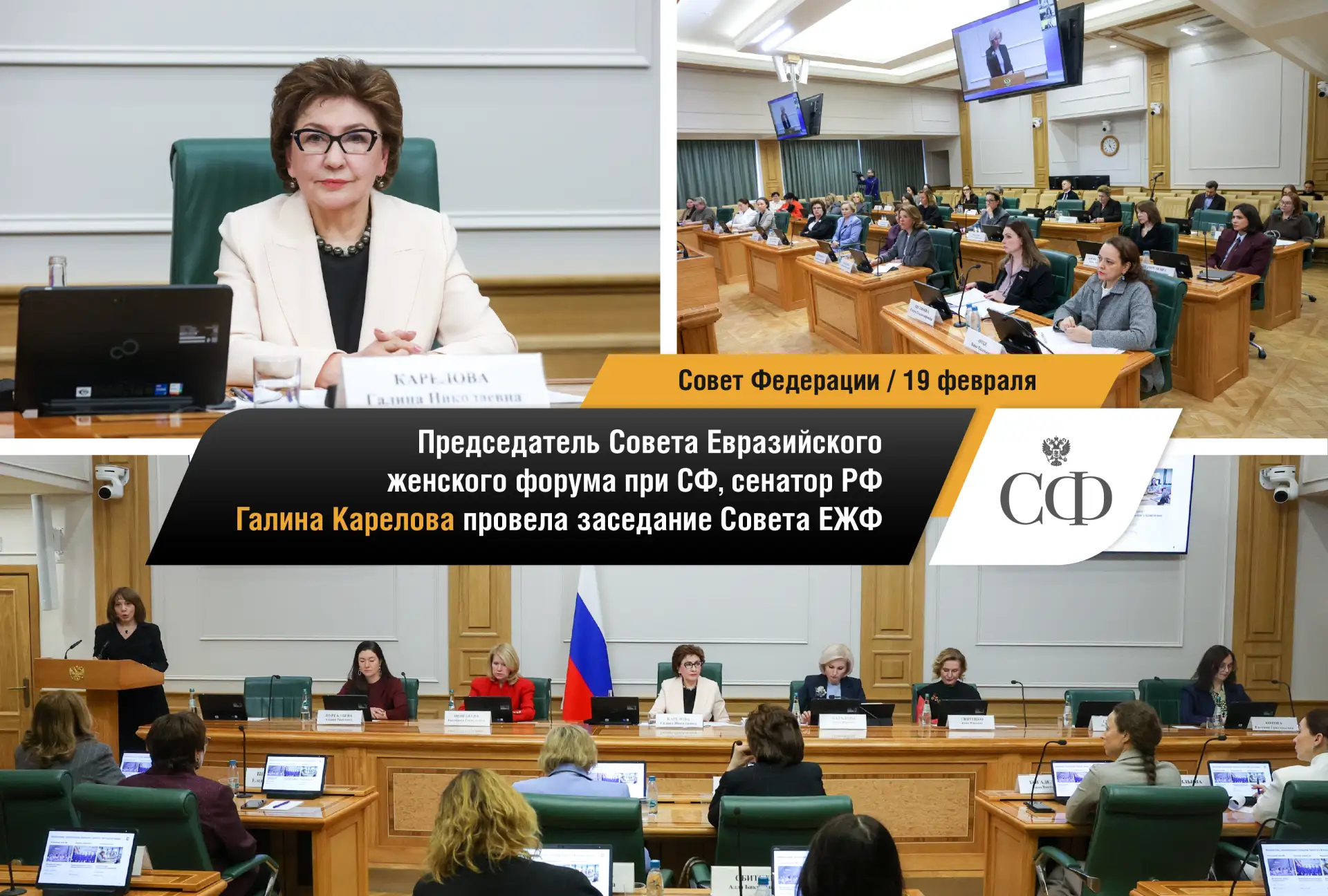 🔹 В 2026 году Совет Евразийского форума будет активно заниматься продвижением проектов по популяризации охраны здоровья и по профилактике заболеваний, созданию условий для гармоничного совмещения женщинами профессиональных и семейных обязанностей, развитию образовательных программ и международного сотрудничества. Об этом сенатор Галина Карелова заявила на заседании Совета ЕЖФ. Также, по мнению парламентария, одним из эффективных инструментов информирования граждан о проектах и инициативах Совета, развития женской повестки стали международные и российские форумы.