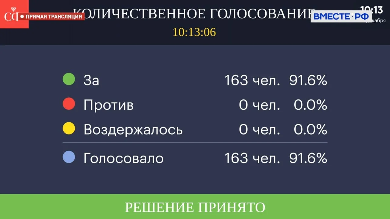 Сенаторы одобрили закон на пленарном заседании единогласно.