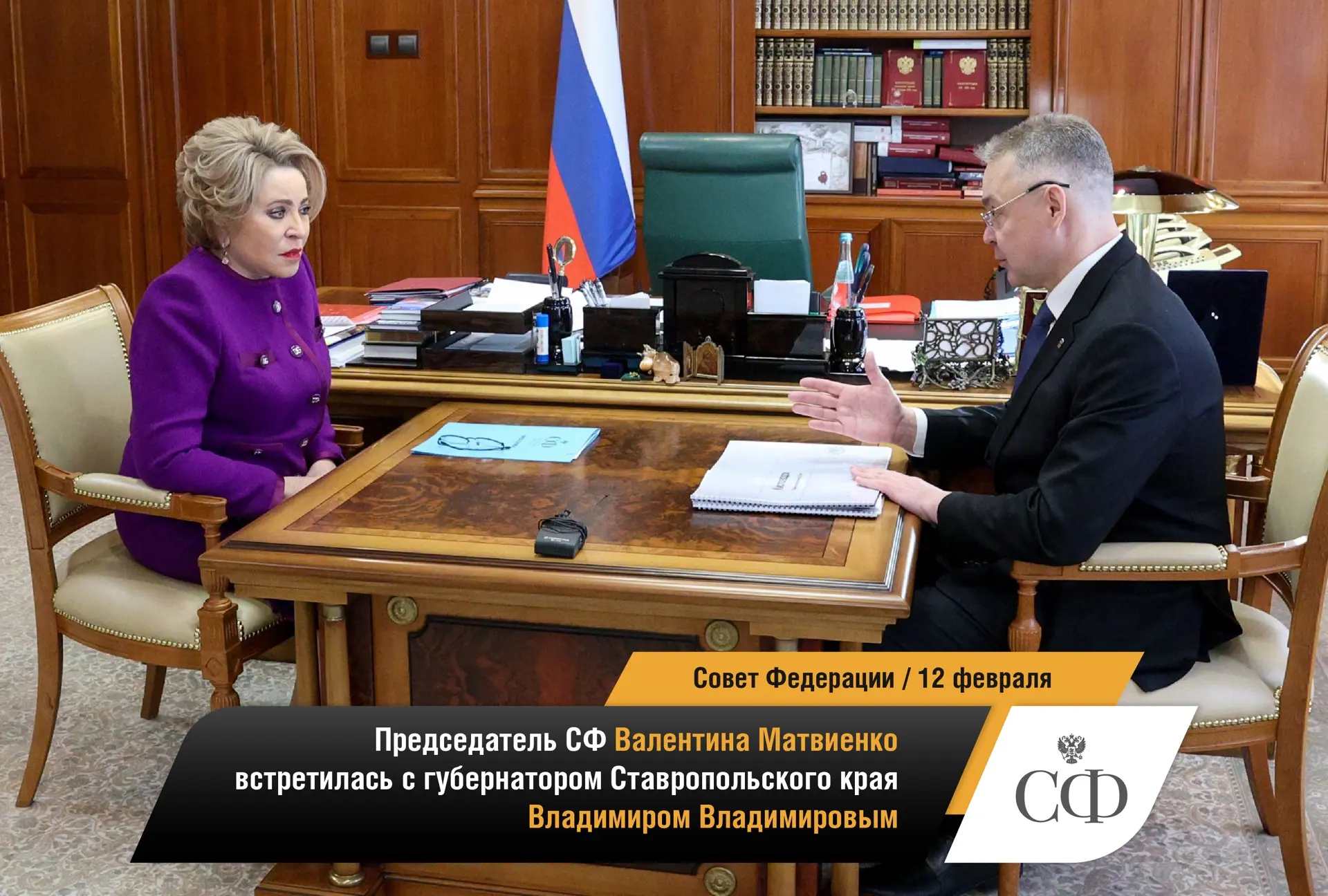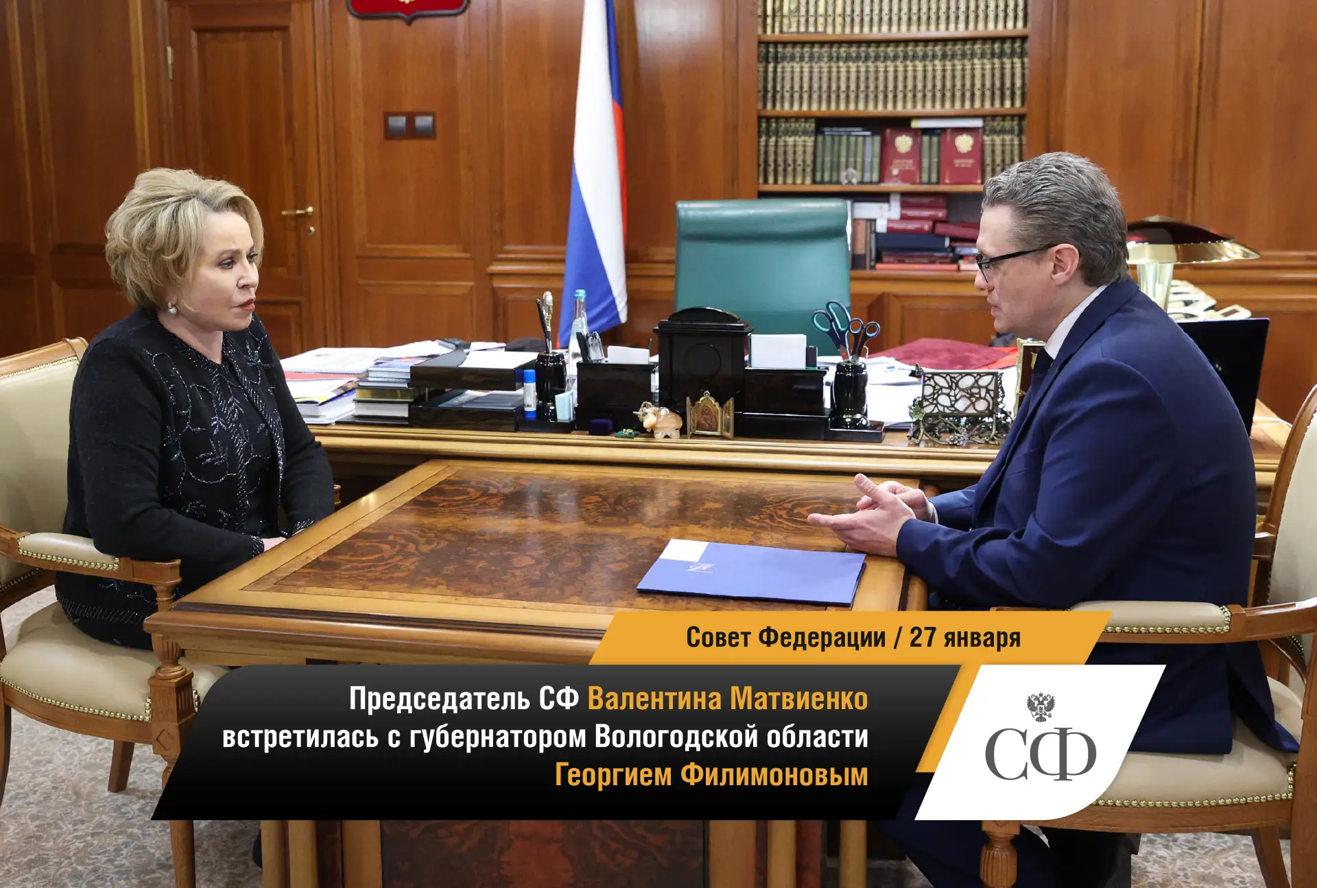 🔹 Валентина Матвиенко провела встречу с губернатором Вологодской области Георгием Филимоновым.