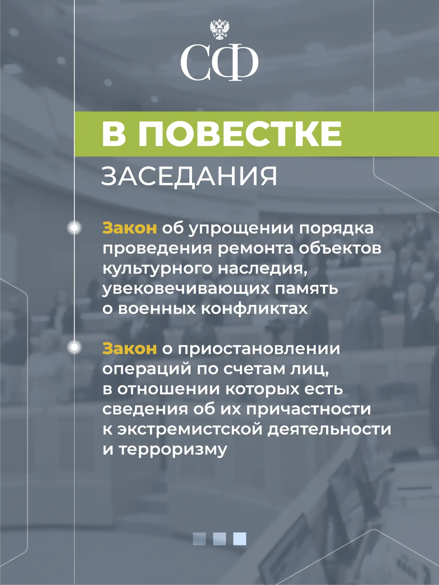🔹 602 пленарное заседание Совета Федерации. Сенаторы одобрили законы: