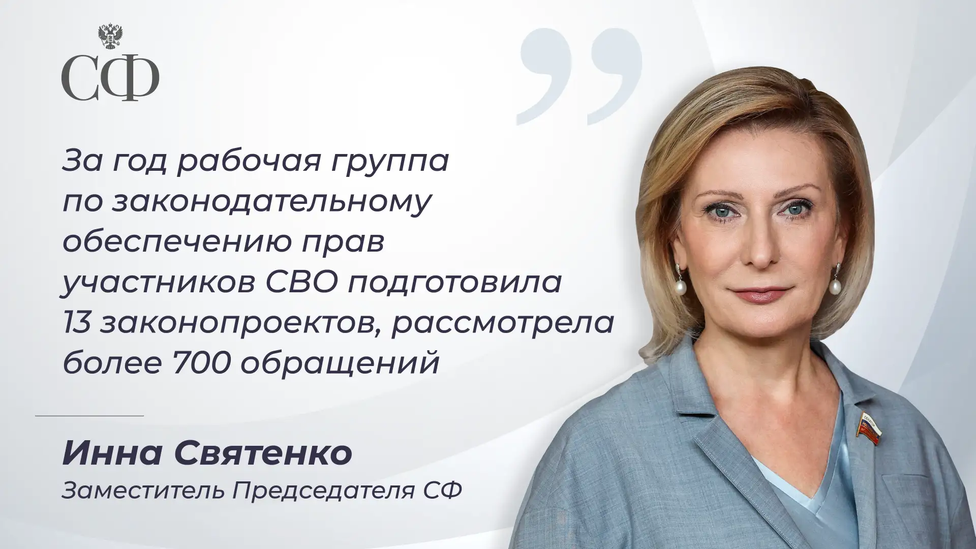 🔹Инна Святенко, заместитель Председателя Совета Федерации,
