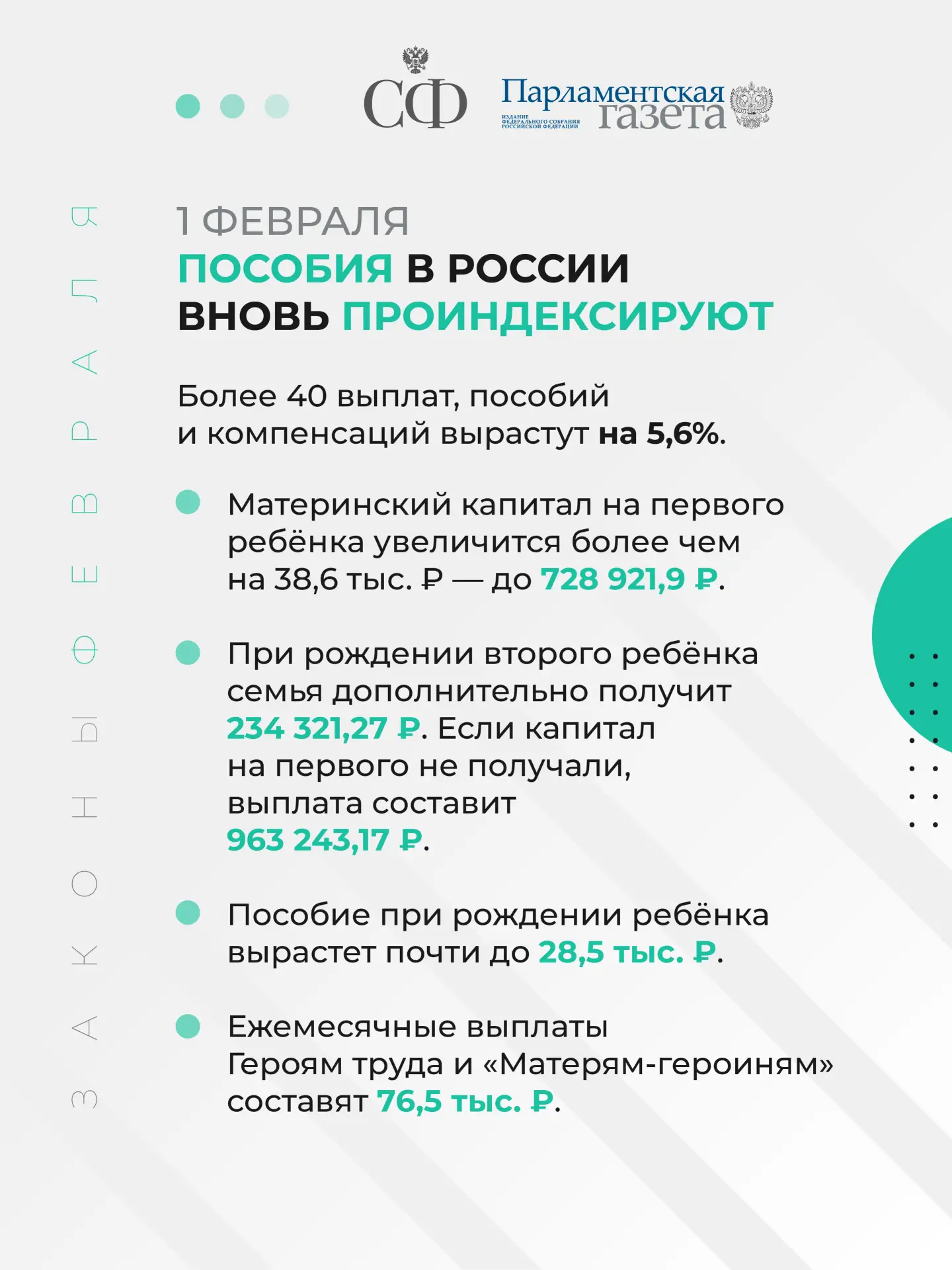 Об этих и других законах, вступающих в силу в феврале 2026 года, читайте в совместных карточках с «Парламентской газетой».