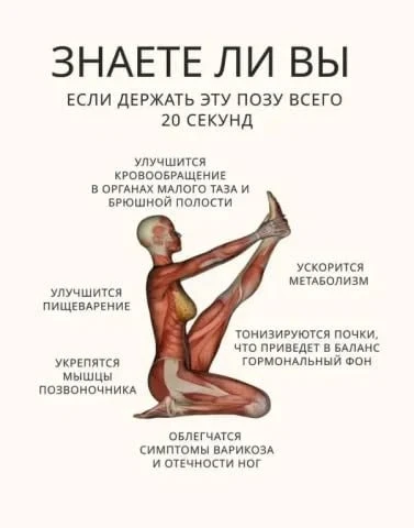 Двадцать секунд — и кровообращение в органах малого таза и брюшной полости становится активнее. Ускоряется метаболизм, улучшается пищеварение. Тонизируются почки, что приводит в баланс гормональный фон.