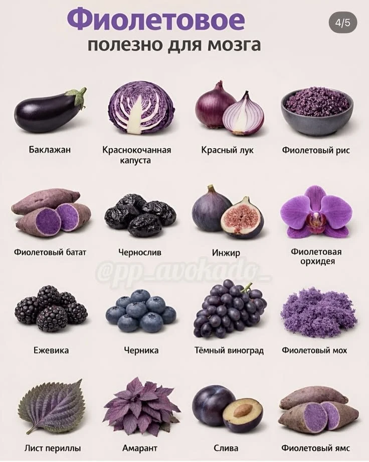 Антоцианы улучшают кровоток в мозге, уменьшают воспаление нейронов и помогают формировать новые нервные связи. Есть горсть тёмных ягод или порцию фиолетовых овощей каждый день — мозг останется молодым дольше. Сохрани список — иди в магазин за фиолетовым.