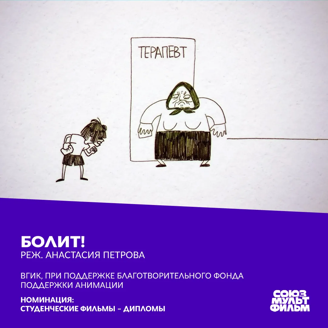 • «Болит!», реж. Анастасия Петрова, ВГИК (при поддержке Благотворительного фонда поддержки анимации)