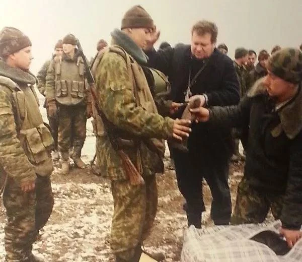 Во время первой войны в Чечне в начале 90-х батюшка не раз посещал российских военных, многих из них он крестил, исповедовал, причащал, во Вторую Чеченскую ездил с благотворительной миссией, раздавал теплые вещи и еду мирным людям Грозного.
