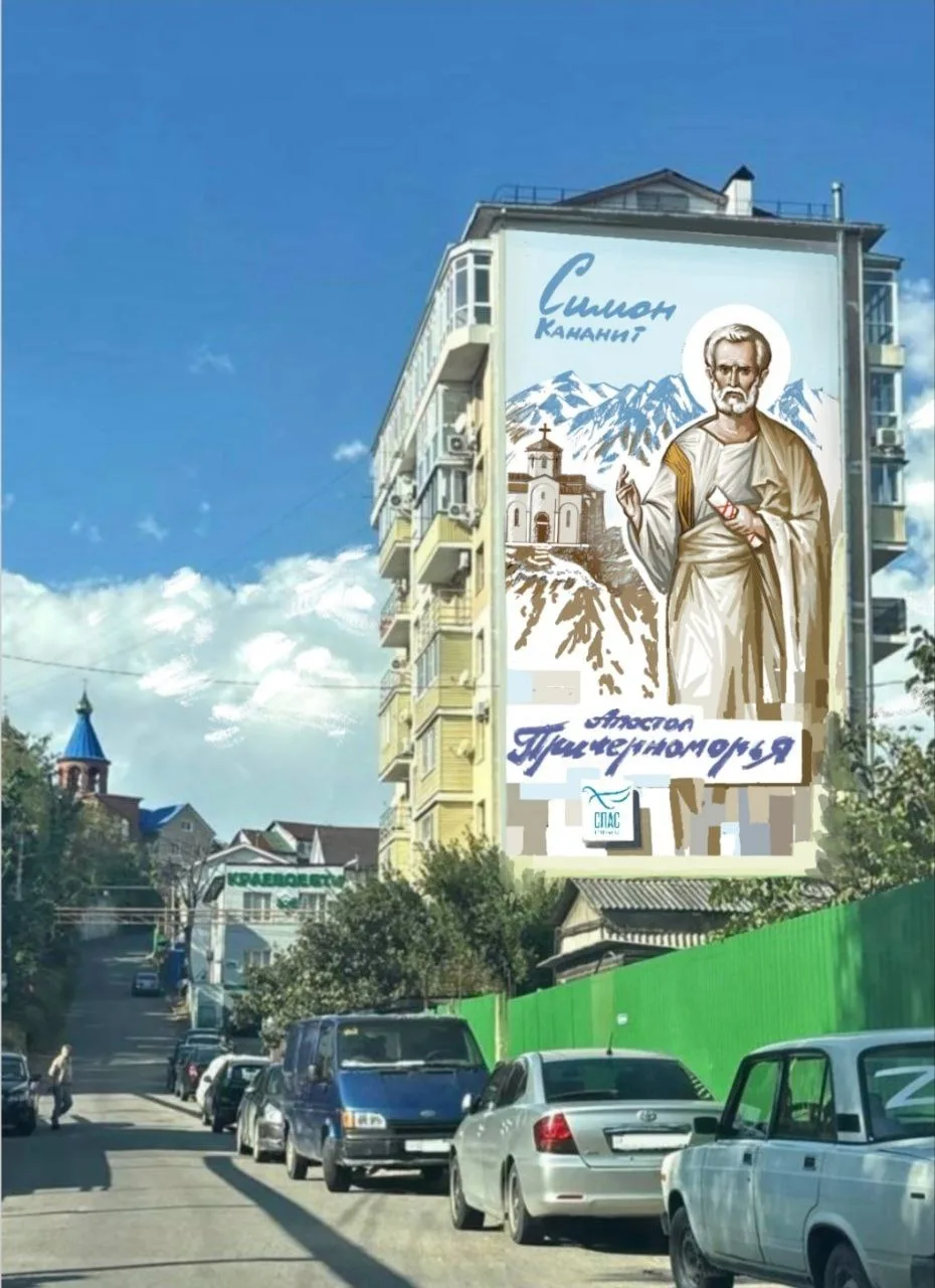Поэтому мы вместе со всеми зрителями и подписчиками «Спаса» делаем мурал с ликом святого апостола Симона Кананита в земле, где он проповедовал и над которой его особый покров – в тёплом и всегда полном туристами Туапсе.