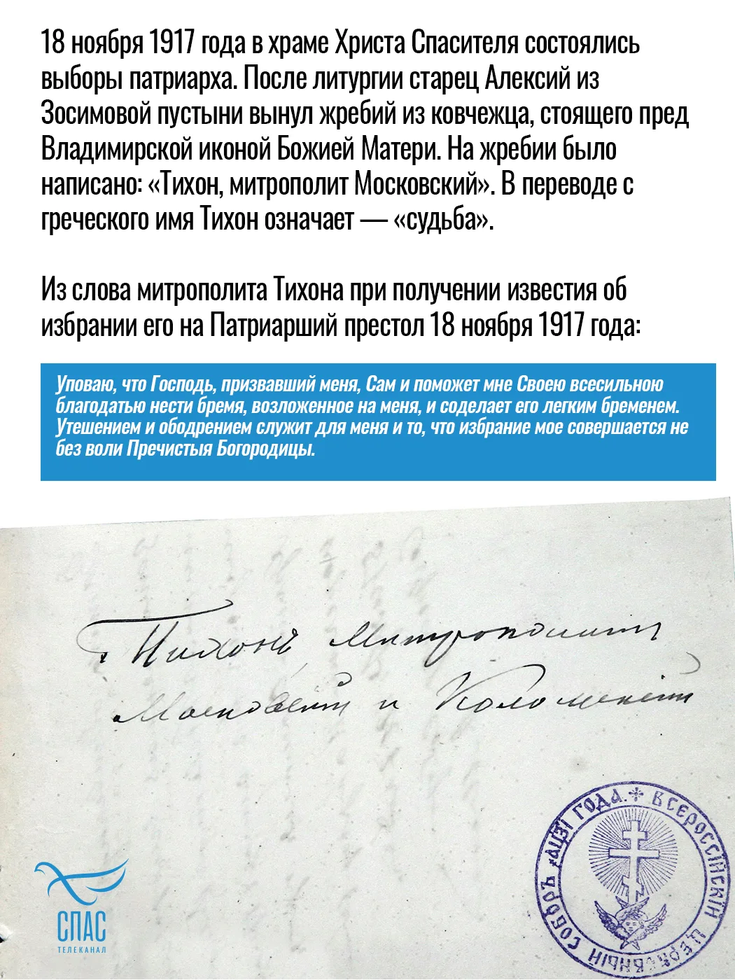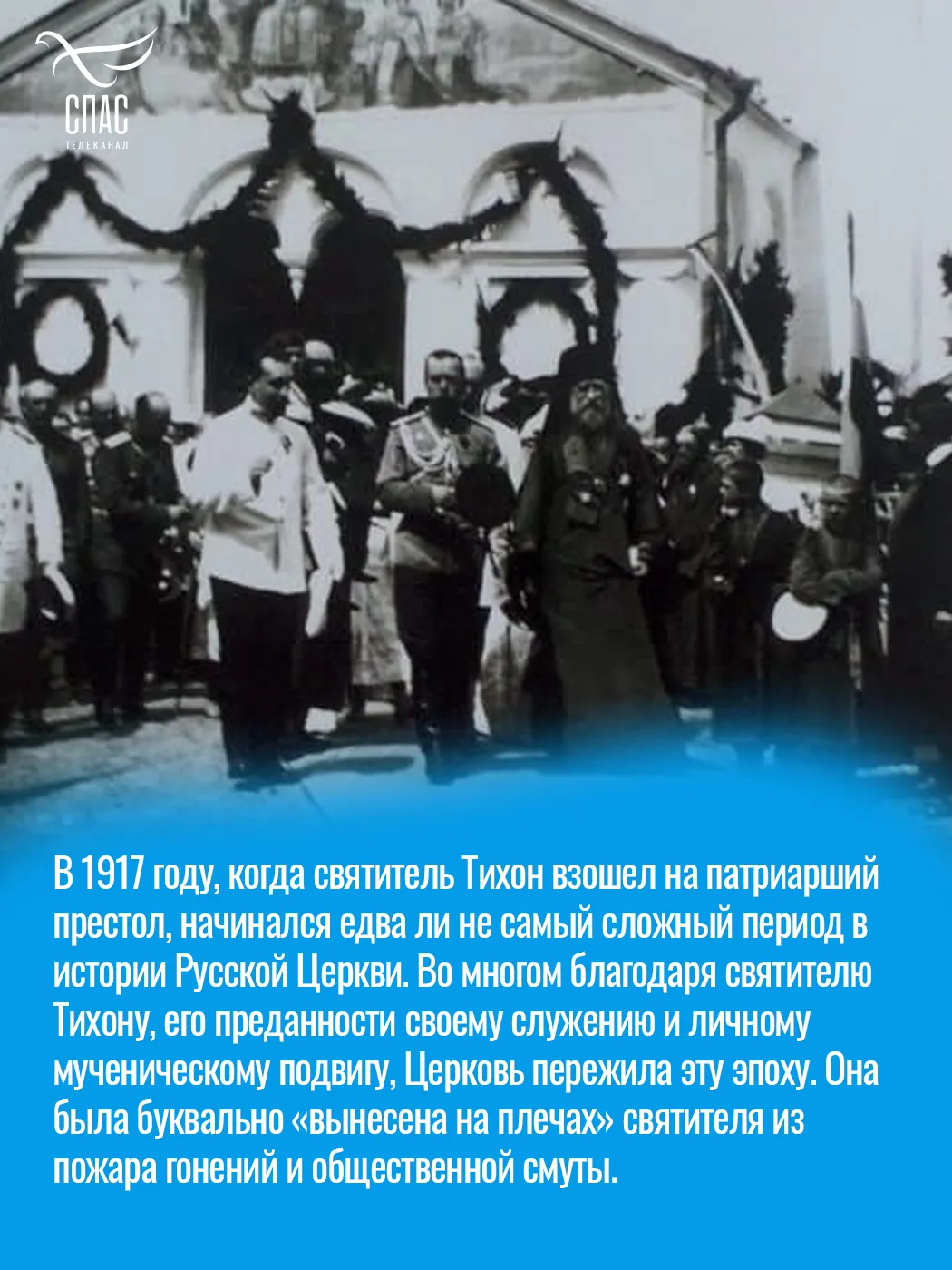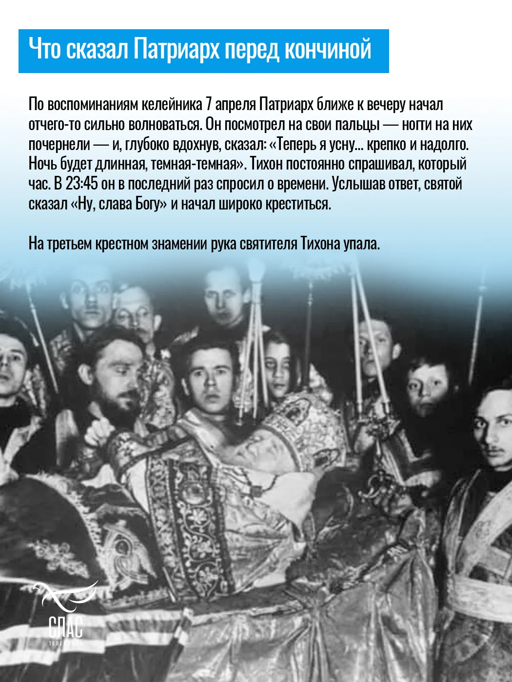 О, пастырю наш добрый, святый великий патриарше Тихоне! яко град горний ты явился еси, добрая дела твоя и доныне светятся пред человеки.
