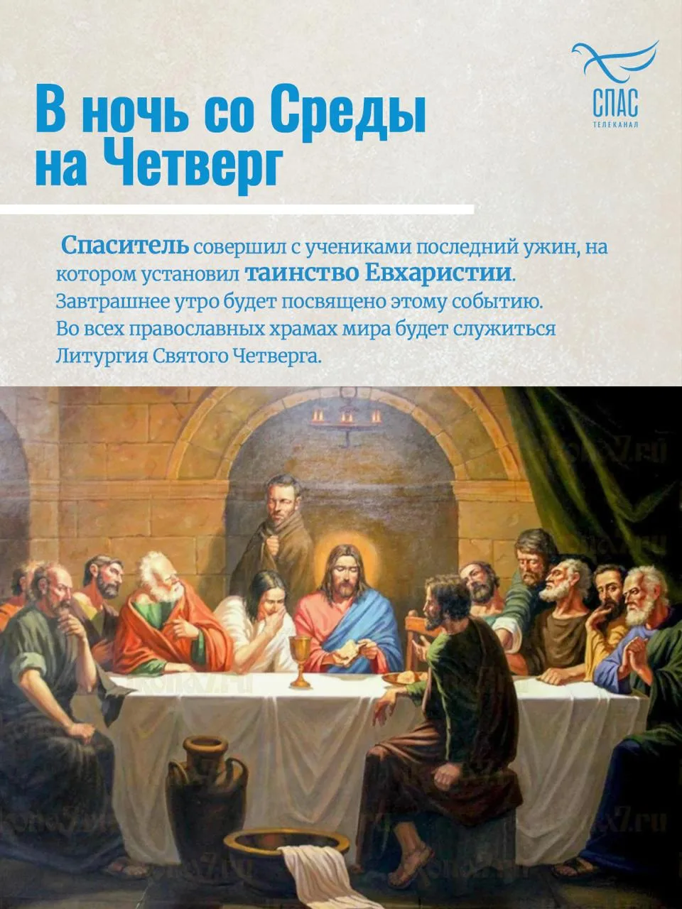 ☦️ Великая Среда — день предания на Страдания и Смерть Господа и Спаса нашего Иисуса Христа.