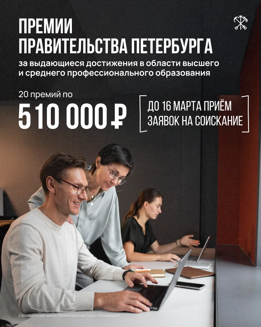 Идёт приём заявок на соискание премий Правительства Петербурга за выдающиеся достижения в области высшего и среднего профессионального образования.