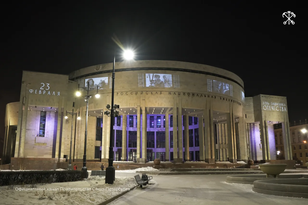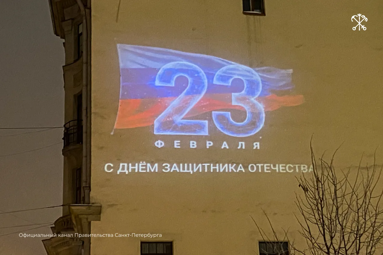 Фасады петербургских зданий украсили ко Дню защитника Отечества. В семи районах с 20 по 23 февраля можно увидеть световые проекции-открытки.