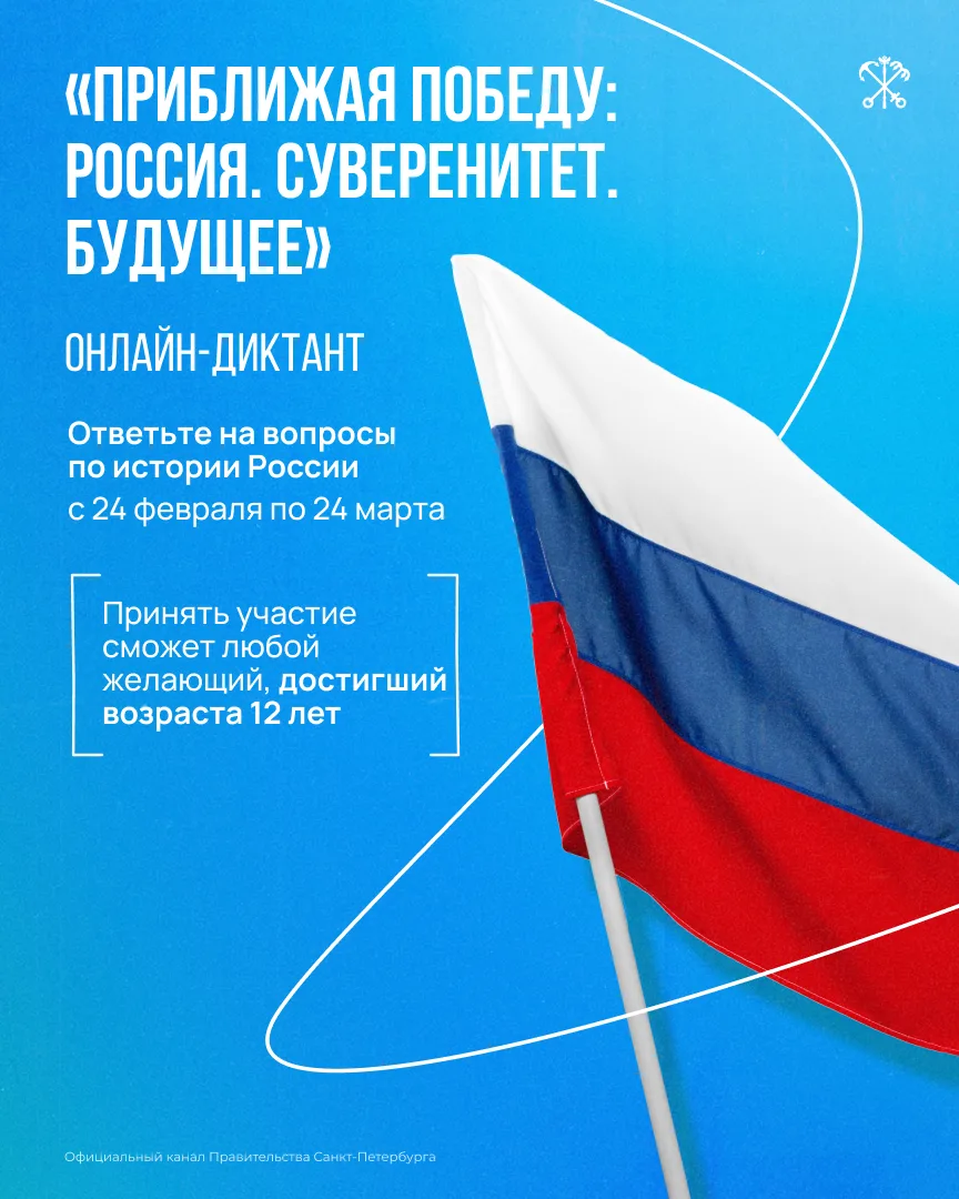 🧑🎓 Онлайн-диктант, посвящённый теме суверенитета России и её будущему, стартует 24 февраля в 16:00.