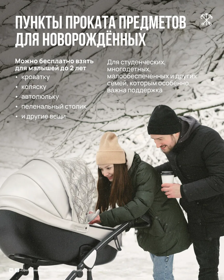 • Во всех районах заработали пункты проката, в которых семьи могут бесплатно взять предметы для новорождённых.