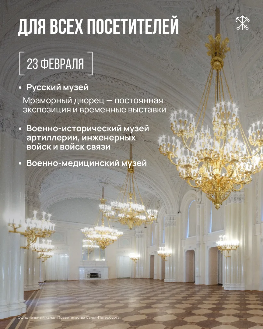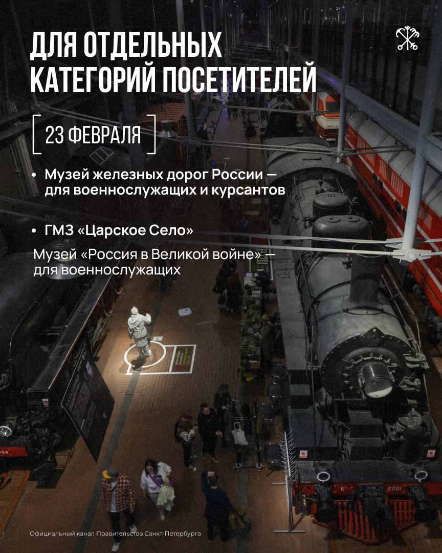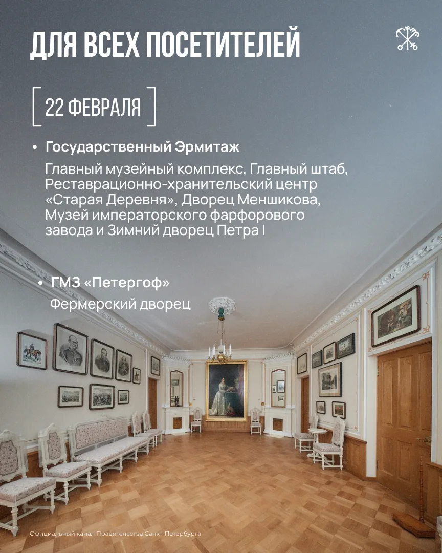 Среди них — Эрмитаж, Музей артиллерии, Военно-медицинский музей и другие. Список может дополняться — следите за обновлениями на портале «Культура Петербурга».