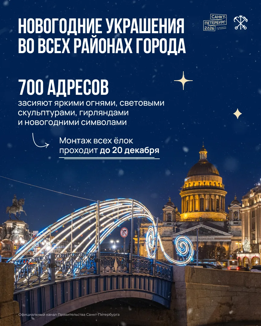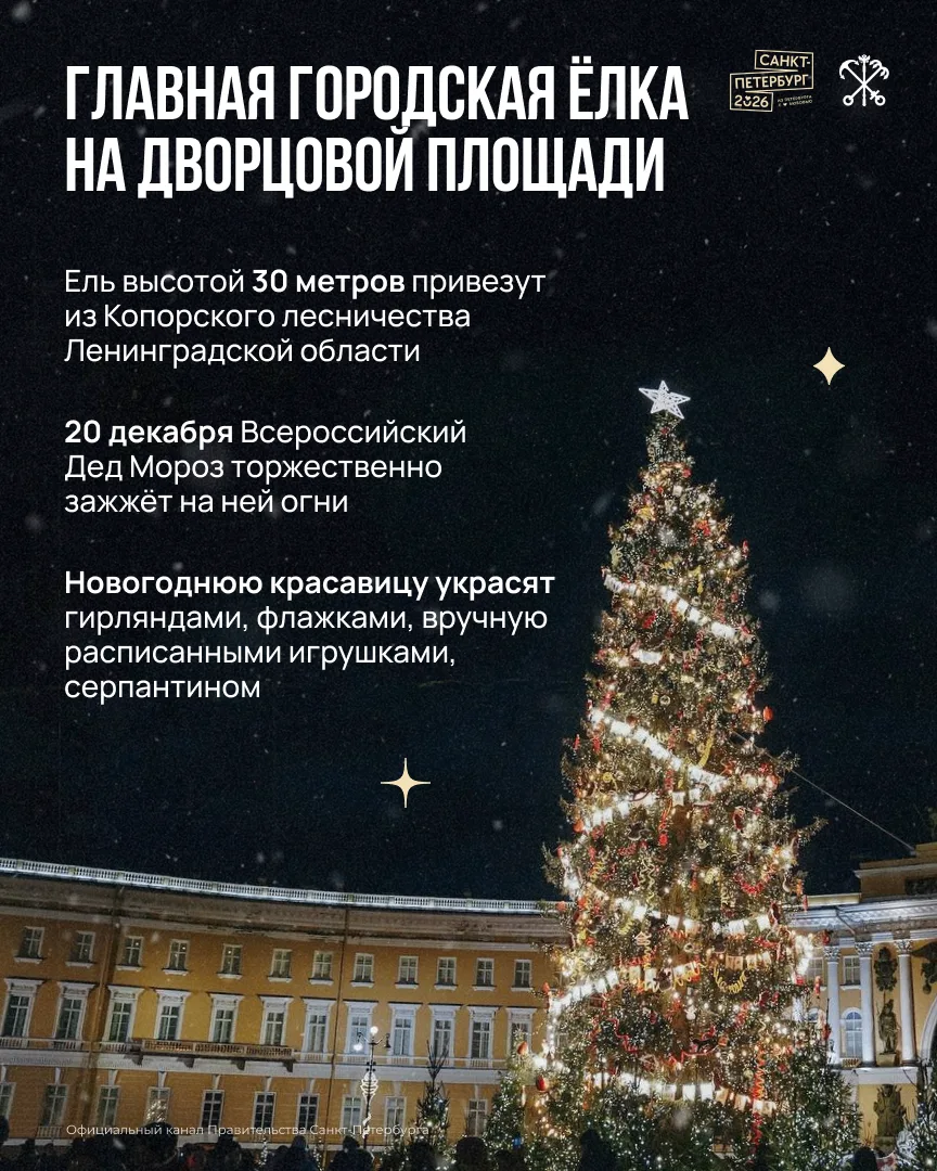 Город украшается яркими огнями, а главная ёлка скоро займёт своё место на Дворцовой площади. В эти выходные откроется юбилейная XX Рождественская ярмарка.