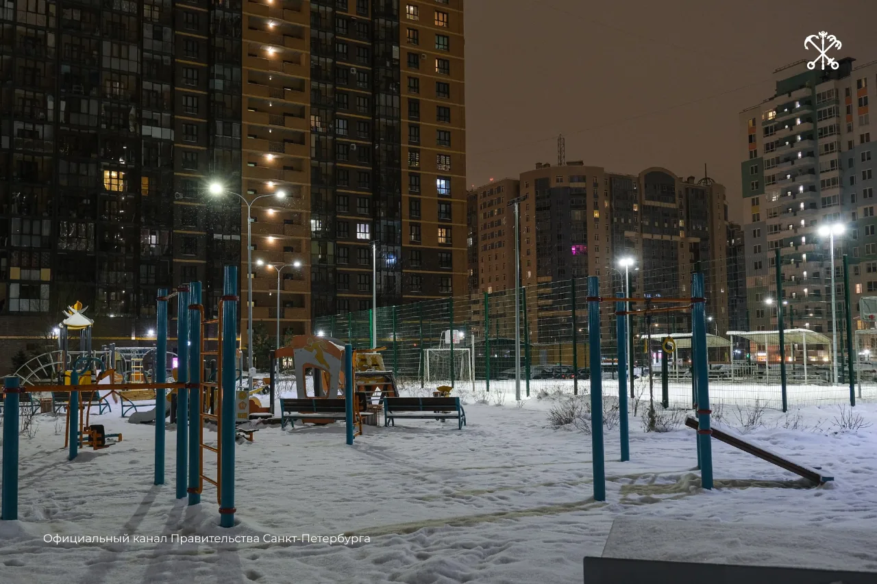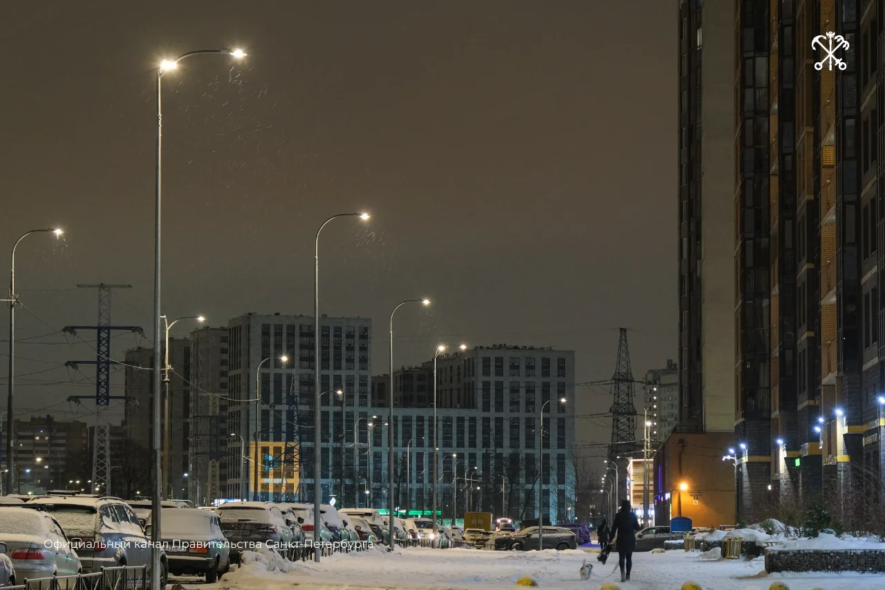 В квартале Полюстрово 24–27 подключили новое уличное освещение. Теперь территорию освещают 398 светодиодных светильников на 298 опорах.