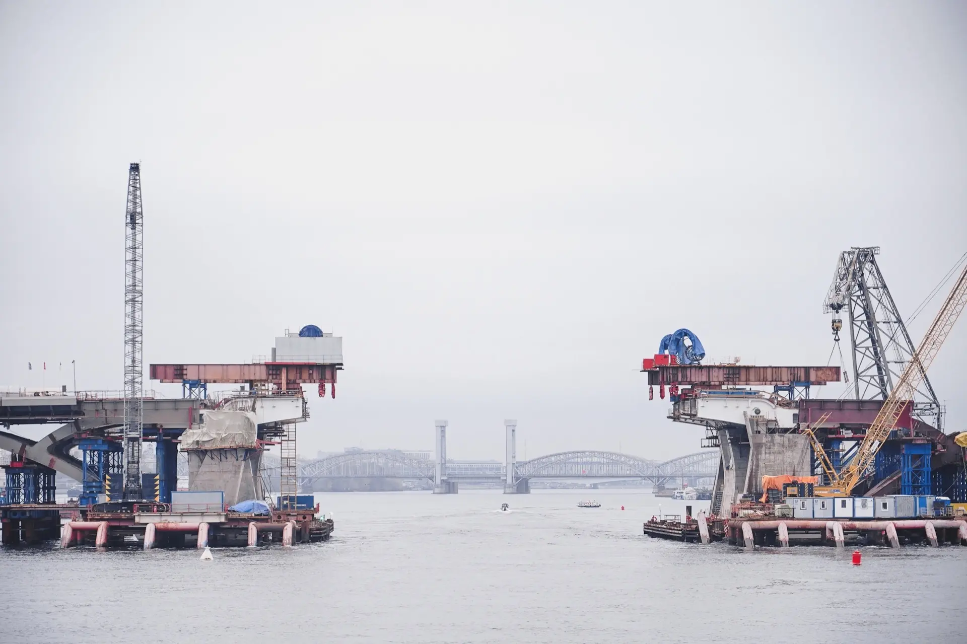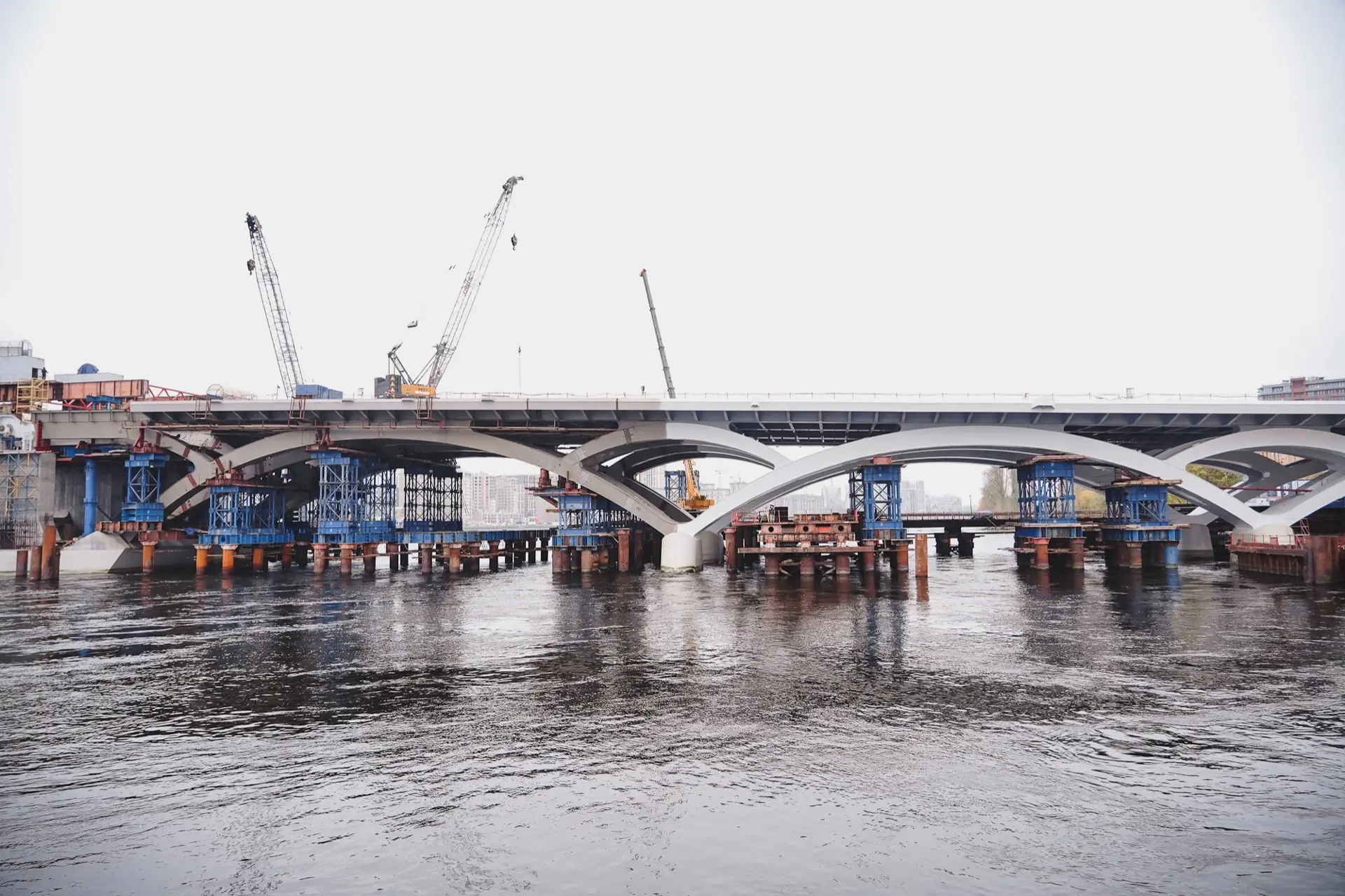 Строительство ведётся с опережением графика. Специалисты уже установили крылья разводного пролёта весом 400 тонн каждое.К навигации 2026 года Большой Смоленский мост будет готов пропускать суда. Окончательно проект завершат в 2028 году.