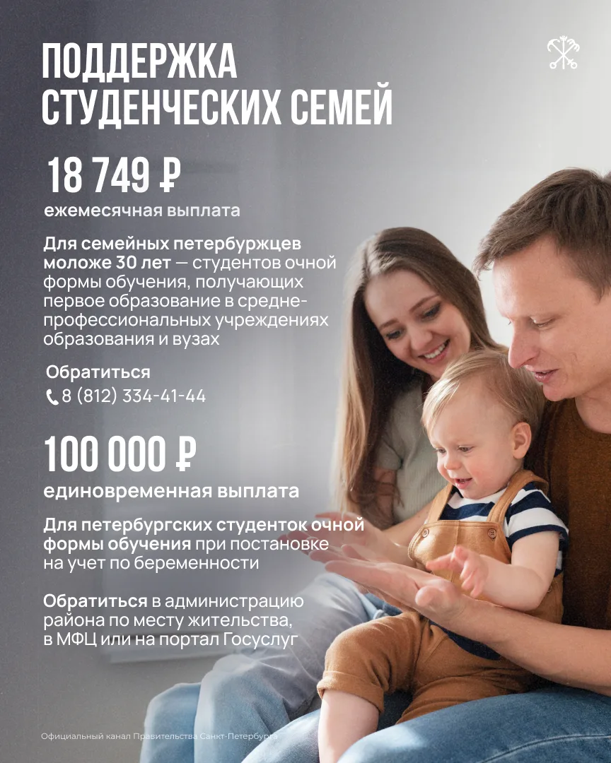 • Для петербургских семей увеличили до 1 млн рублей выплаты на погашение ипотеки при рождении третьего и последующих детей после 1 января 2025 года.