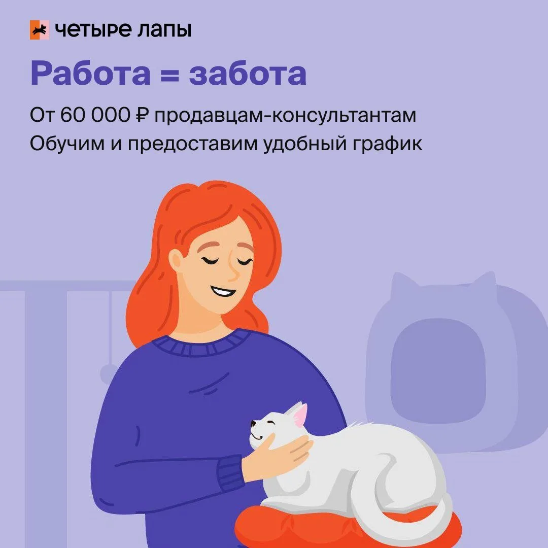 Продавец-консультант в «Четыре Лапы» 🐾 З/п от 61 400 ₽
