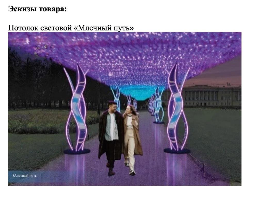 Главный акцент – световой потолок «Млечный путь» за 39,9 млн и 14-метровая мультимедийная елка еще за 29,7 млн. Подрядчика для установки сияющего декора ищет СПб ГКУ «Городской центр рекламы и праздничного оформления» (директор – Андрей Чистяков).