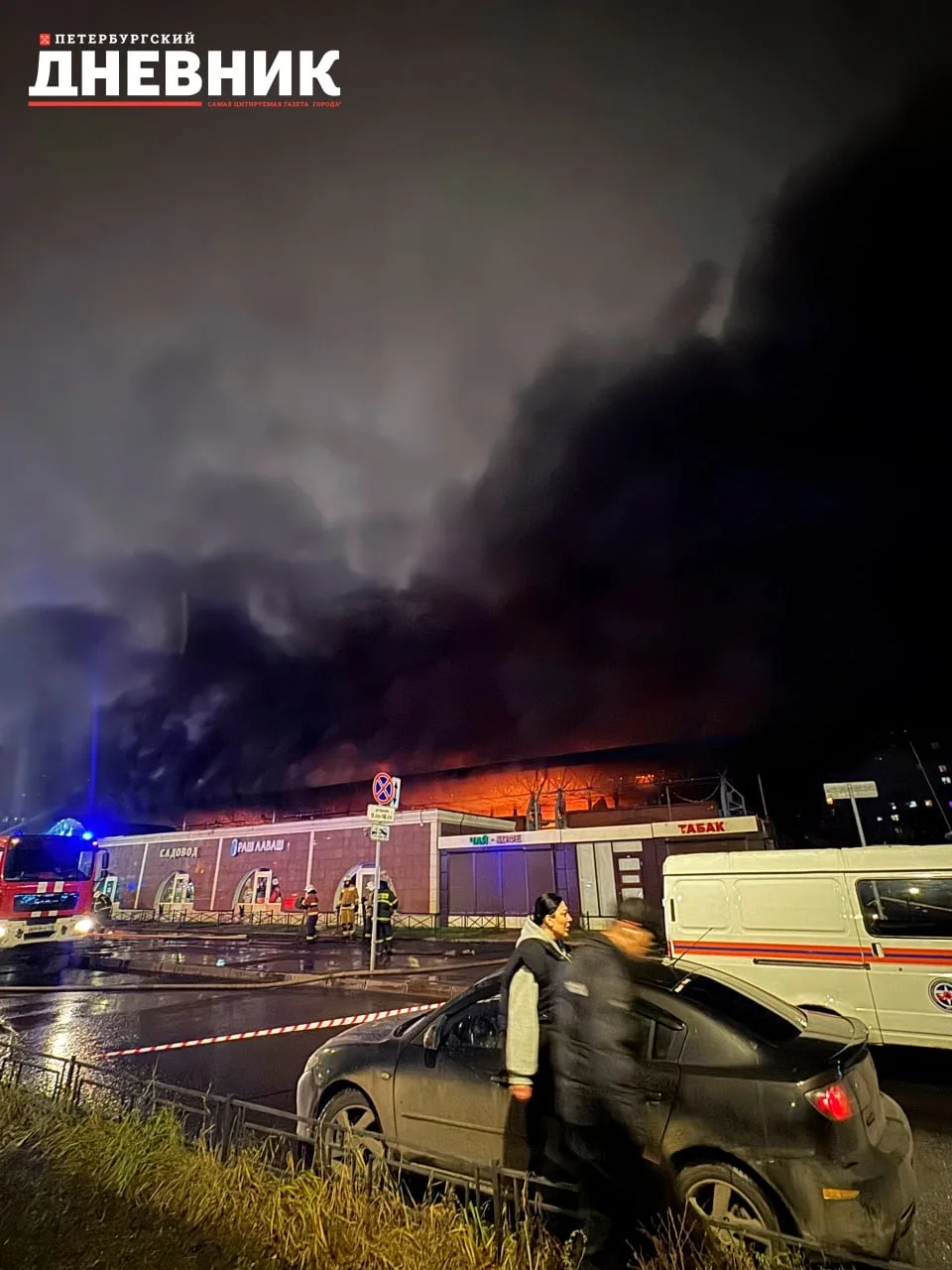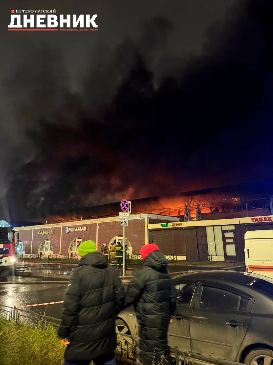 Вечером на улице Дыбенко вспыхнул пожар в здании Правобережного рынка. Как сообщили МЧС, первые расчёты прибыли через восемь минут после вызова, но к этому моменту внутри уже шло интенсивное горение — огню сразу присвоили повышенный ранг сложности № 2.