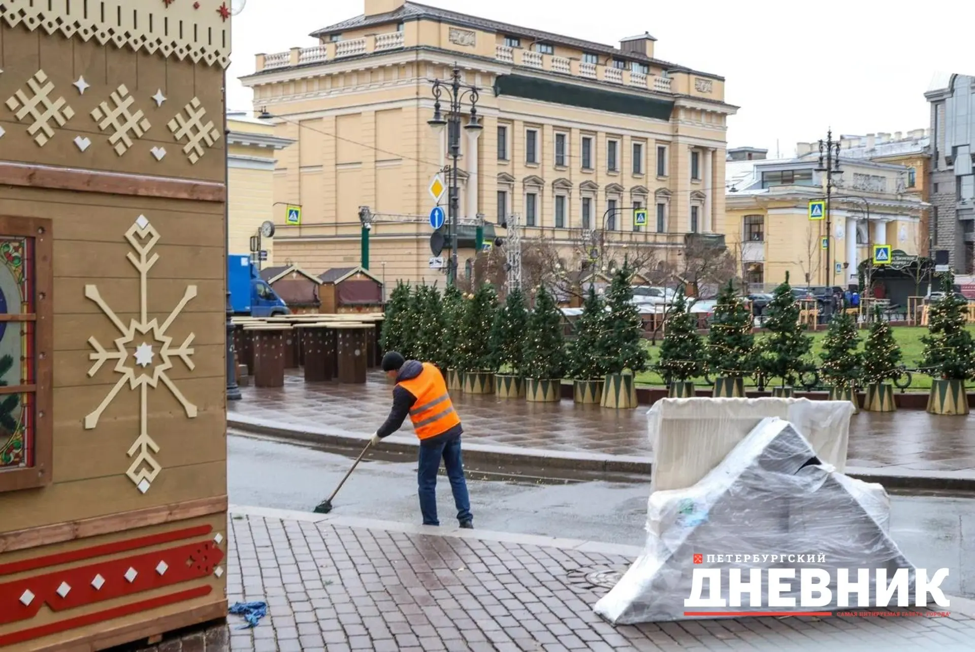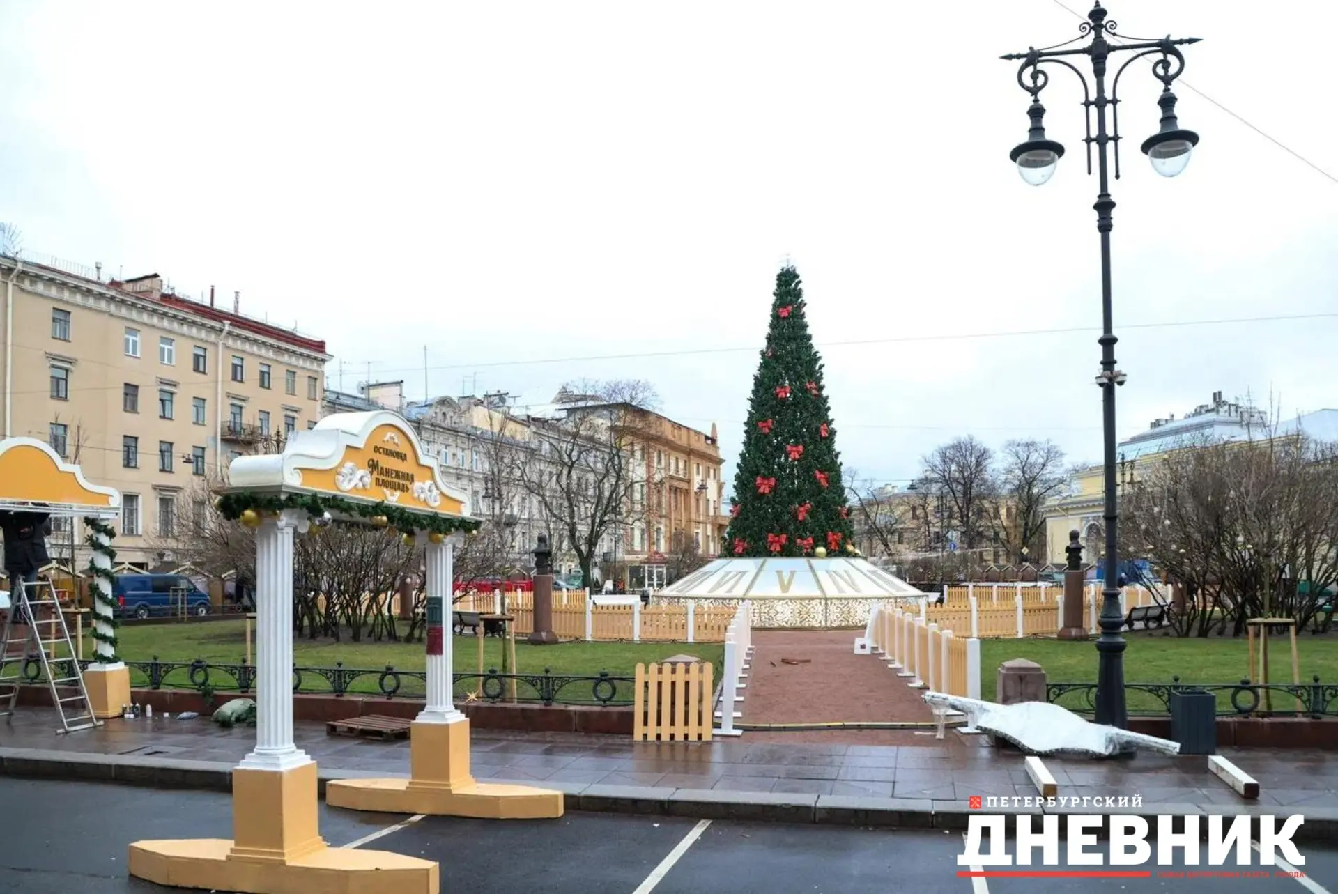 По данным на 10 декабря, монтаж оформления завершён почти полностью — оставшиеся работы на Якорной площади идут по графику.