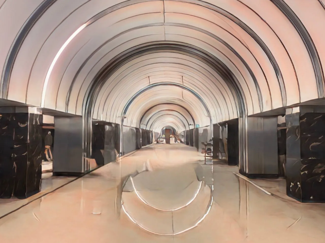 Станция «Путиловская» на строящейся Красносельско-Калининской линии метрополитена Санкт-Петербурга готовится к приему пассажиров. В центральном зале и боковых тоннелях заканчивают освобождение потолочных панелей от защитной пленки, и станция начинает приобретать свой финальный вид.