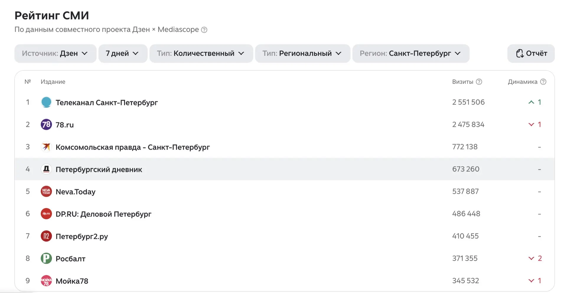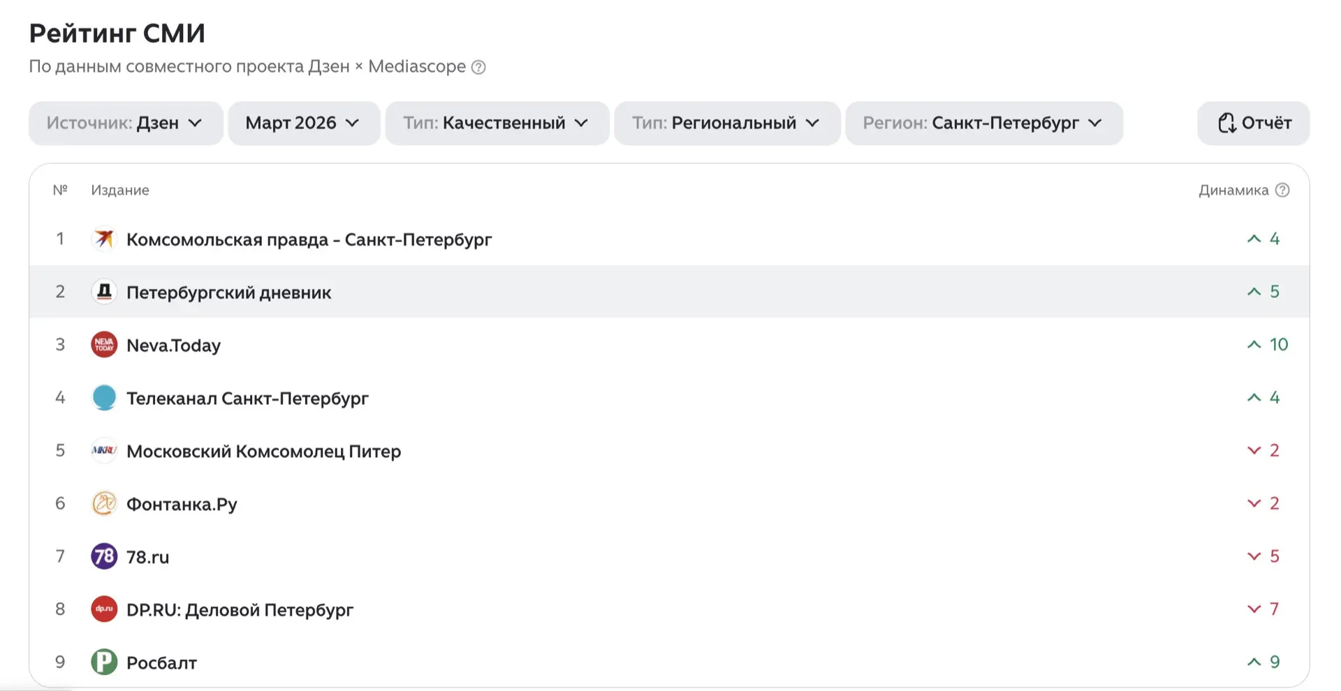 📊 «Петербургский дневник» укрепил позиции в медиарейтингах