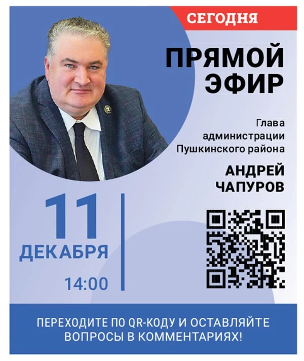 Глава администрации Пушкинского района Андрей Чапуров проводит прямой эфир в официальной группе района ВКонтакте. В центре разговора — итоги Года защитника Отечества и 80-летия Победы в Великой Отечественной войне, а также значимые события в жизни района в 2025-м году.
