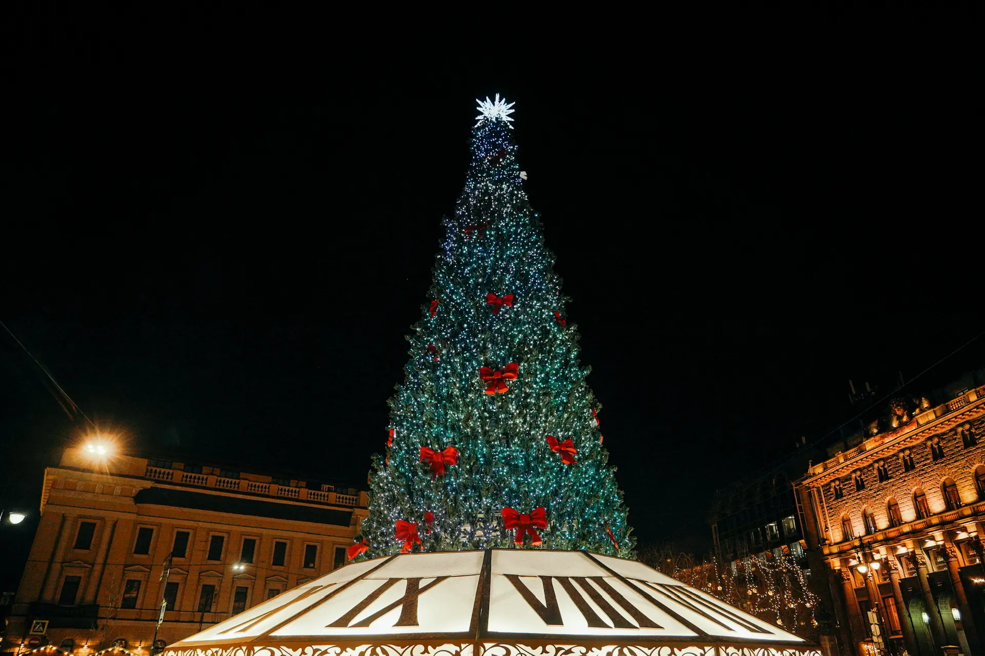 Кронштадтский район оформлен к зимним праздникам: город сохранил масштаб прошлогодней программы и дополнил её новыми акцентами. Главная 15-метровая живая ель традиционно появится на Якорной площади — сейчас завершается её декоративное оформление. Рядом расположат фотозону «Зимний сад» с десятками искусственных елей, световыми деревьями и тематическими элементами — от «Звёздной арки» до «Штурвала» и «Ангела».