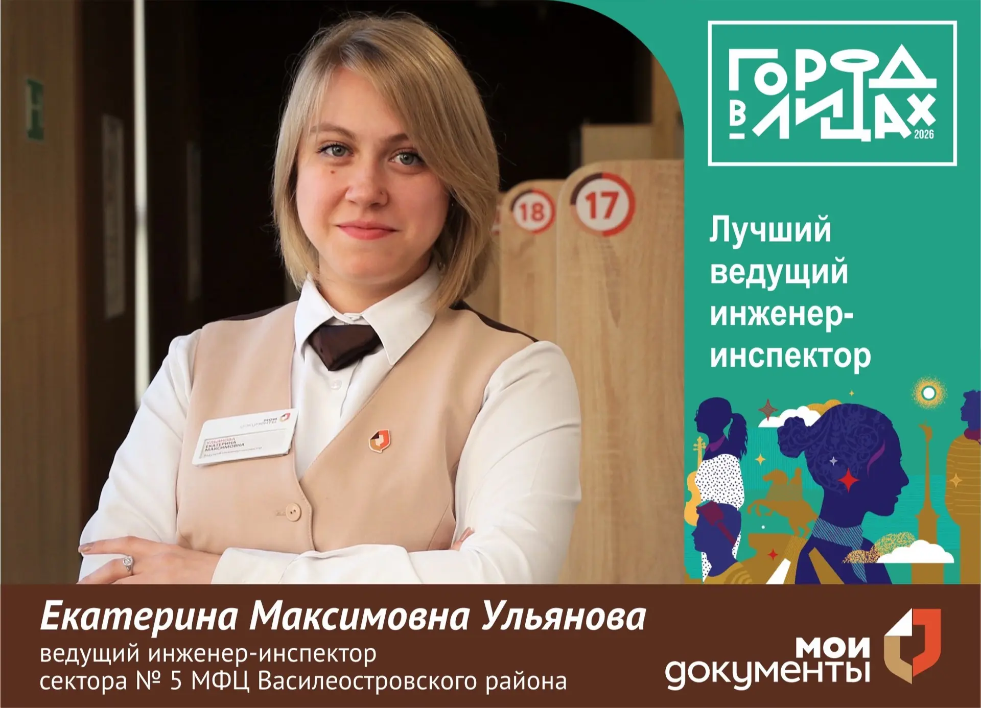 Инженер-инспектор МФЦ Невского района Елена Малкова, победитель премии «Город в лицах 2025» рассказала о своей профессии.