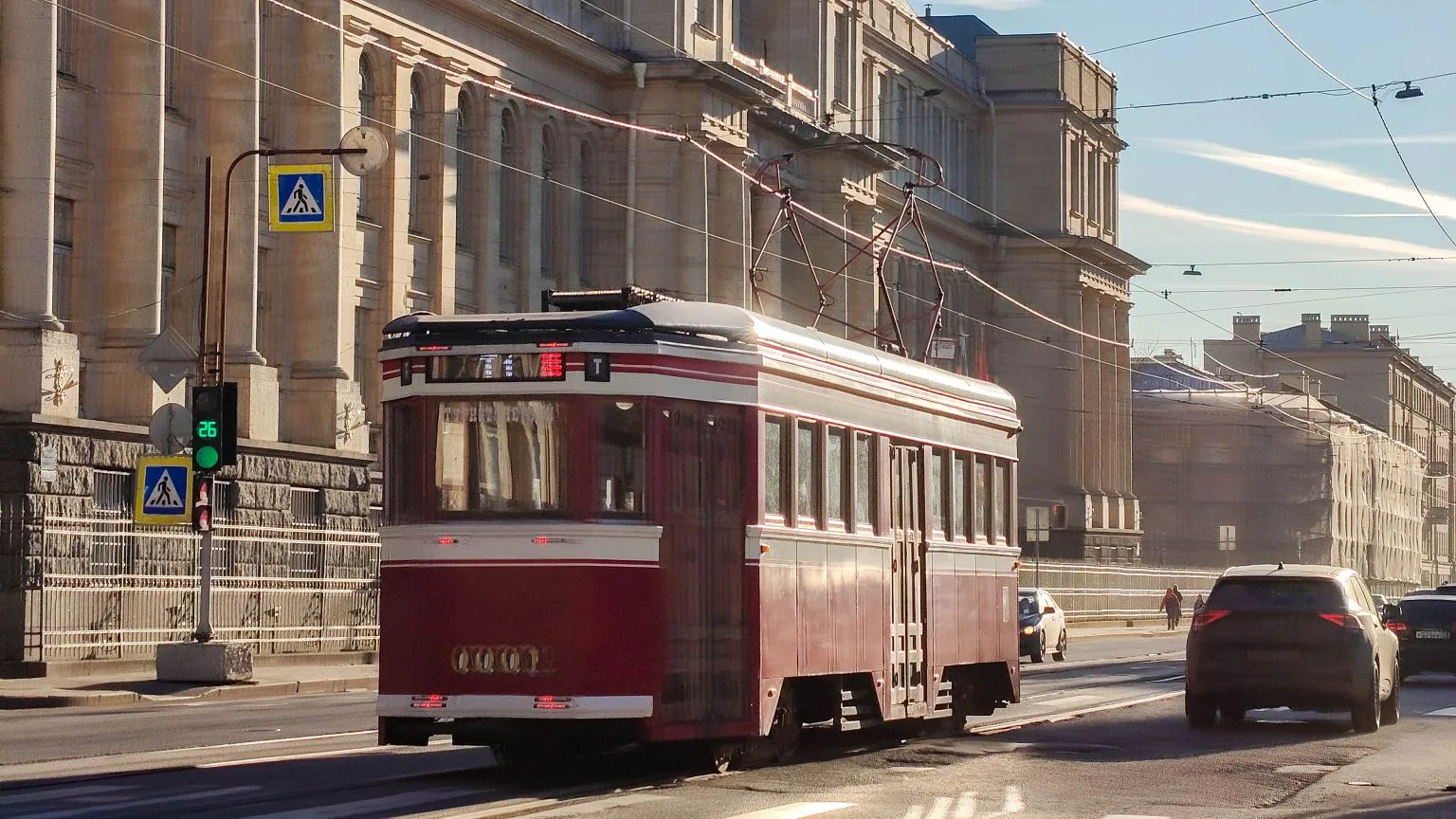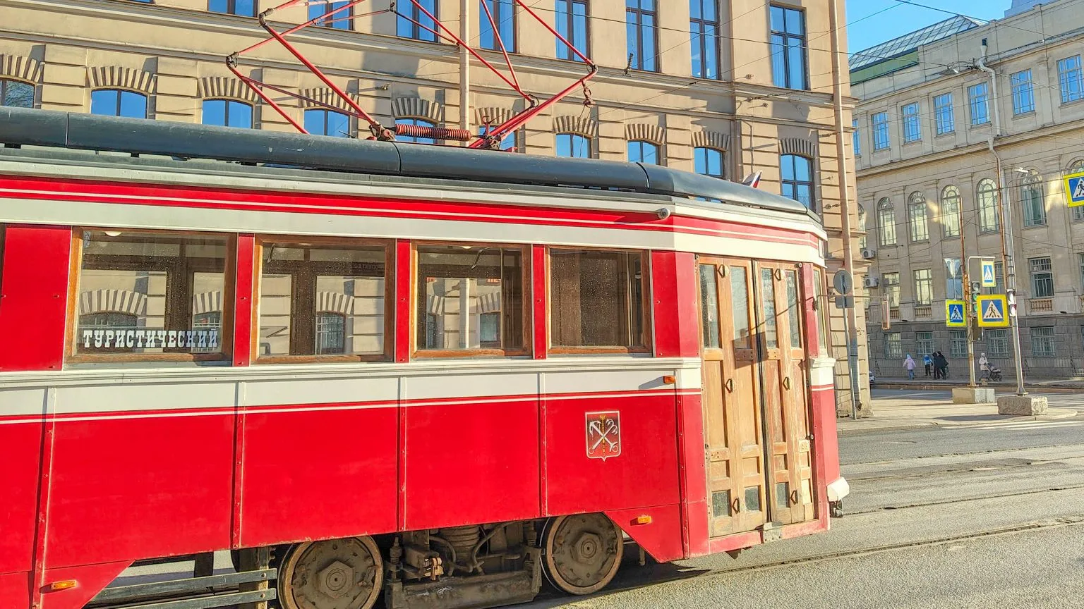 ретро-трамвай, резко отличающийся от привычного городского транспорта своим стилем «под старину». Путешествие на колёсах начинается с Васильевского острова, охватывает Петроградскую и Выборгскую стороны и Центральный район. Всего за полтора часа из окна трамвайчика можно увидеть все значимые туристические места, услышать от гида малоизвестные петербургские истории и, конечно, окунуться в